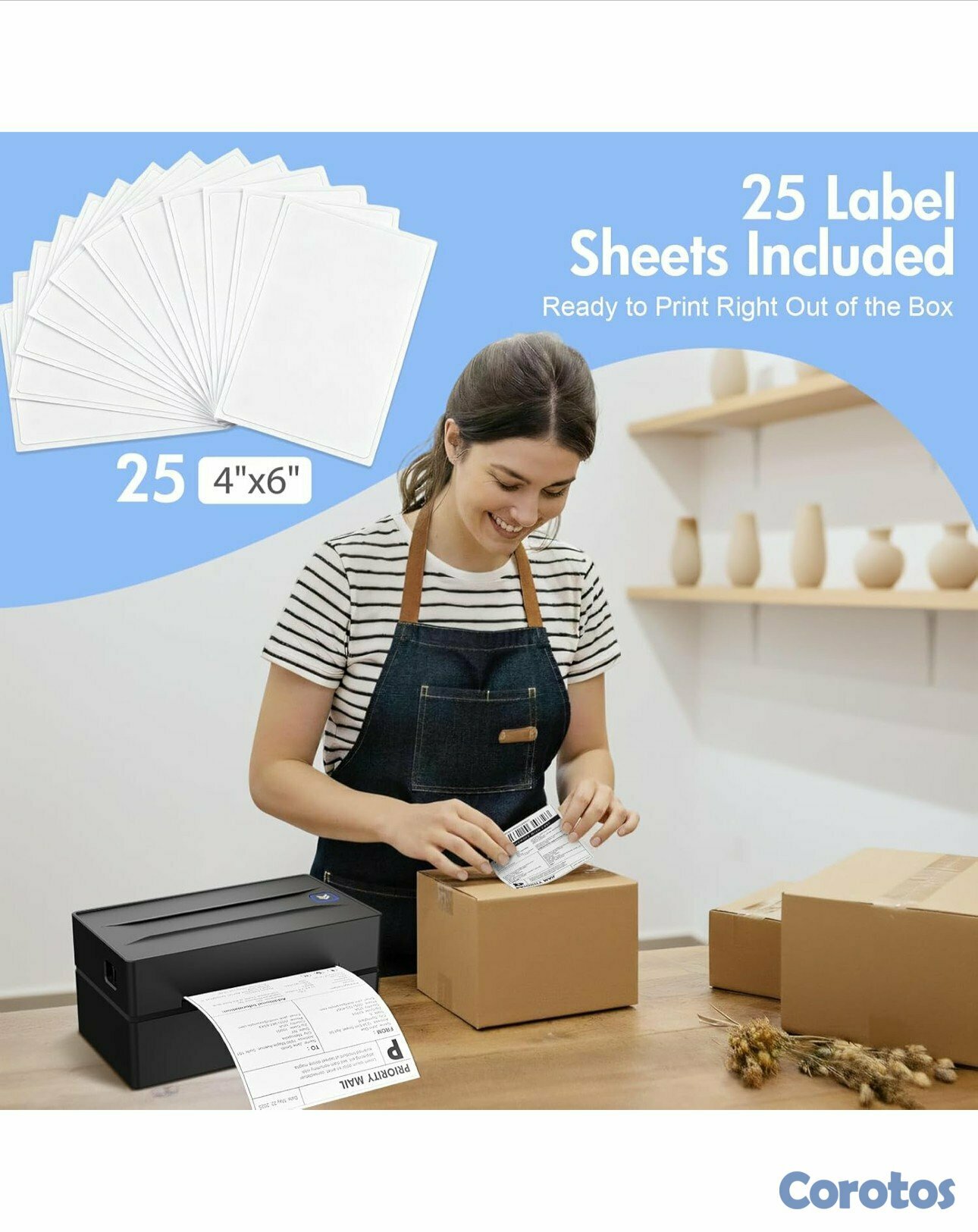 Uso amplio: La impresora térmica es ampliamente utilizada para imprimir etiquetas de varios mercados y plataformas de envío, como Amazon, eBay, ShipStation, ShippingEasy, Shopify, UPS, FedEx, USPS, Shippo, etc.