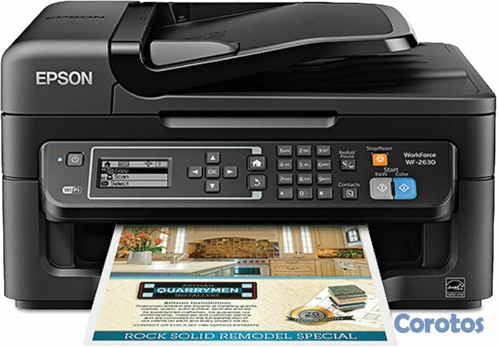 principales:  Funcionalidad: Es un equipo 4 en 1 que permite imprimir, escanear, copiar y enviar/recibir faxes.  Conectividad: Cuenta con conectividad Wi-Fi (IEEE 802.11b/g/n) y Wi-Fi Direct, lo que permite la impresión inalámbrica sin necesidad de una red. También dispone de un puerto USB de alta velocidad.  Impresión Móvil: Es compatible con servicios como Epson Connect (iPrint, Email Print, Scan-to-Cloud), Apple AirPrint y Google Cloud Print, facilitando la impresión desde smartphones y tablets.  Velocidad de Impresión: Alcanza velocidades de hasta 34 páginas por minuto (ppm) en monocromo y 18 ppm en color. La velocidad ISO es de 9 ppm en negro y 4,7 ppm en color.  Calidad de Impresión: Ofrece una resolución máxima de impresión de hasta \(5760\times 1440\) ppp.  Manejo de Papel: Incluye un alimentador automático de documentos (ADF) con capacidad para 30 hojas para escanear, copiar y enviar faxes de varias páginas. La capacidad de entrada total es de 100 hojas A4.  Cartuchos de Tinta: Utiliza cartuchos de tinta individuales de la serie 16 de Epson (o 16XL), lo que permite reemplazar solo el color que se agota.  Pantalla: Incorpora una pantalla LCD monocroma retroiluminada de 5,6 cm para una fácil navegación.  Dimensiones y Peso: Mide aproximadamente \(39,2\times 37,7\times 22,1\) cm y pesa alrededor de 5,8 kg.  Descargo de responsabilidad: La