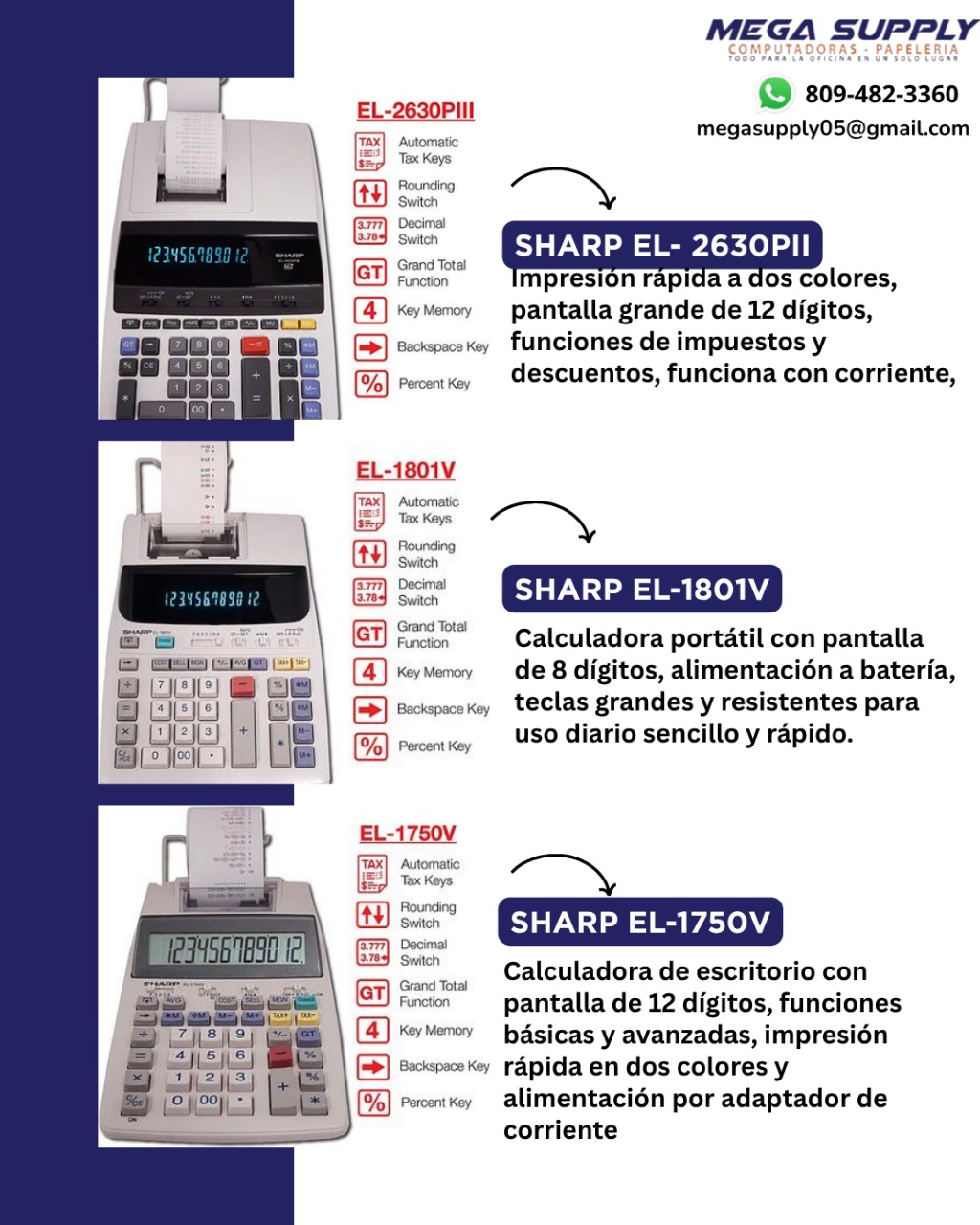 TODAS LAS VARIEDADES SUMADORAS,CALCULADORAS CON PAPEL SHARP