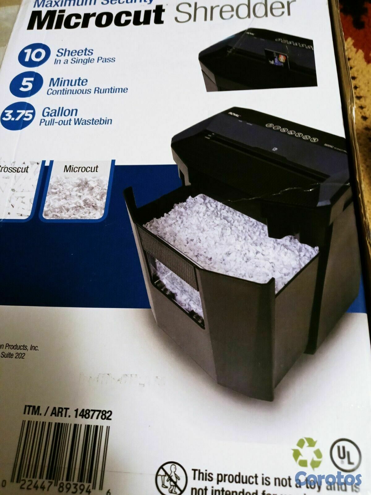 TRITURADORA DE PAPEL ROYAL 1005MC, 10 HOJAS MICRO CORTE , TRITURA GRAPAS Y TARJETAS DE CREDITO, CAPACIDAD DE CESTO 3.75 GALONES EXTRAIBLES. (89394T)