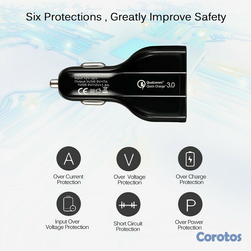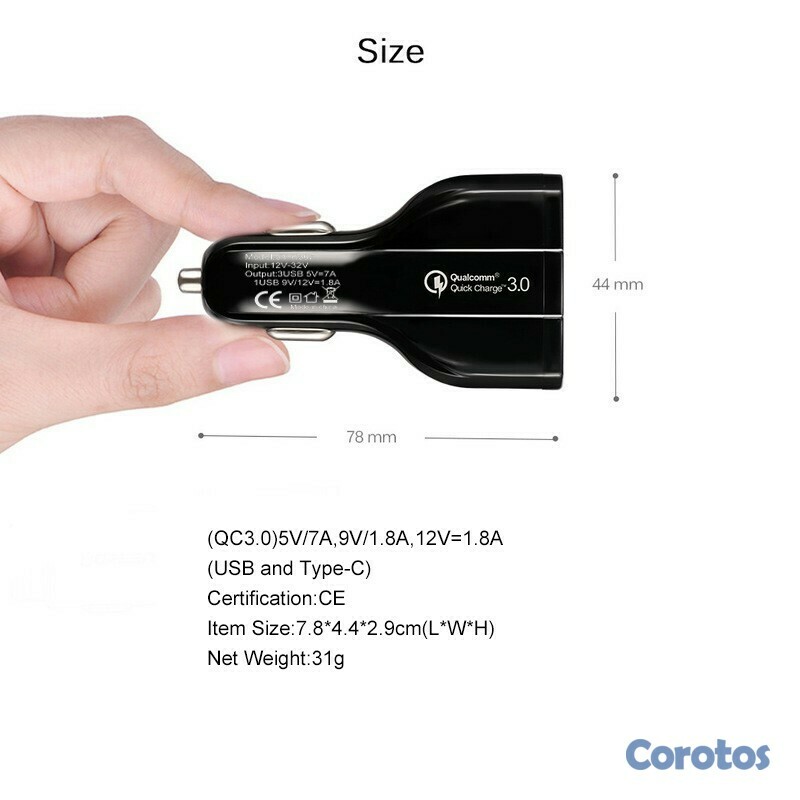 Cargador de vehículos de 3 puertos carga rapida con puerto tipo C