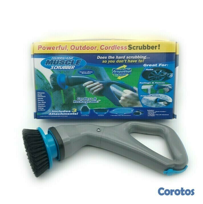 Funciona en todas las superficies, el nuevo depurador muscular todo en uno es un cepillo de fregado inalámbrico creado para limpiar todo tipo de suciedad.Con cuatro cabezales de cepillo diferentes, puede eliminar con fuerza la suciedad rebelde de los muebles de patio al aire libre y cocinas y baños interiores. Potente exfoliante: todos los cepillos incluidos en el Muscle Scrubber están configurados para girar a un ritmo rápido de 500 RPMS. Esta torsión contundente friega y limpia los muebles de exterior de forma rápida y sencilla. La suciedad se elimina con chorro de arena y los cepillos intercambiables también pueden entrar en las grietas de difícil acceso. Recargable: la fregadora es recargable. Viene con un cable de carga que se conecta desde la unidad a un tomacorriente de pared normal para recargar la batería. Limpieza Saludable - Dado que Muscle Scrubber utiliza RPMS de fuerza alta para limpiar los muebles de forma física. La fregadora hace que la limpieza de los efectos secundarios sea más segura para los adultos y los niños son ecológicos. Ligero esta fregadora es extremadamente liviana y es muy fácil de recoger y usar para limpiar superficies sin cansarse.