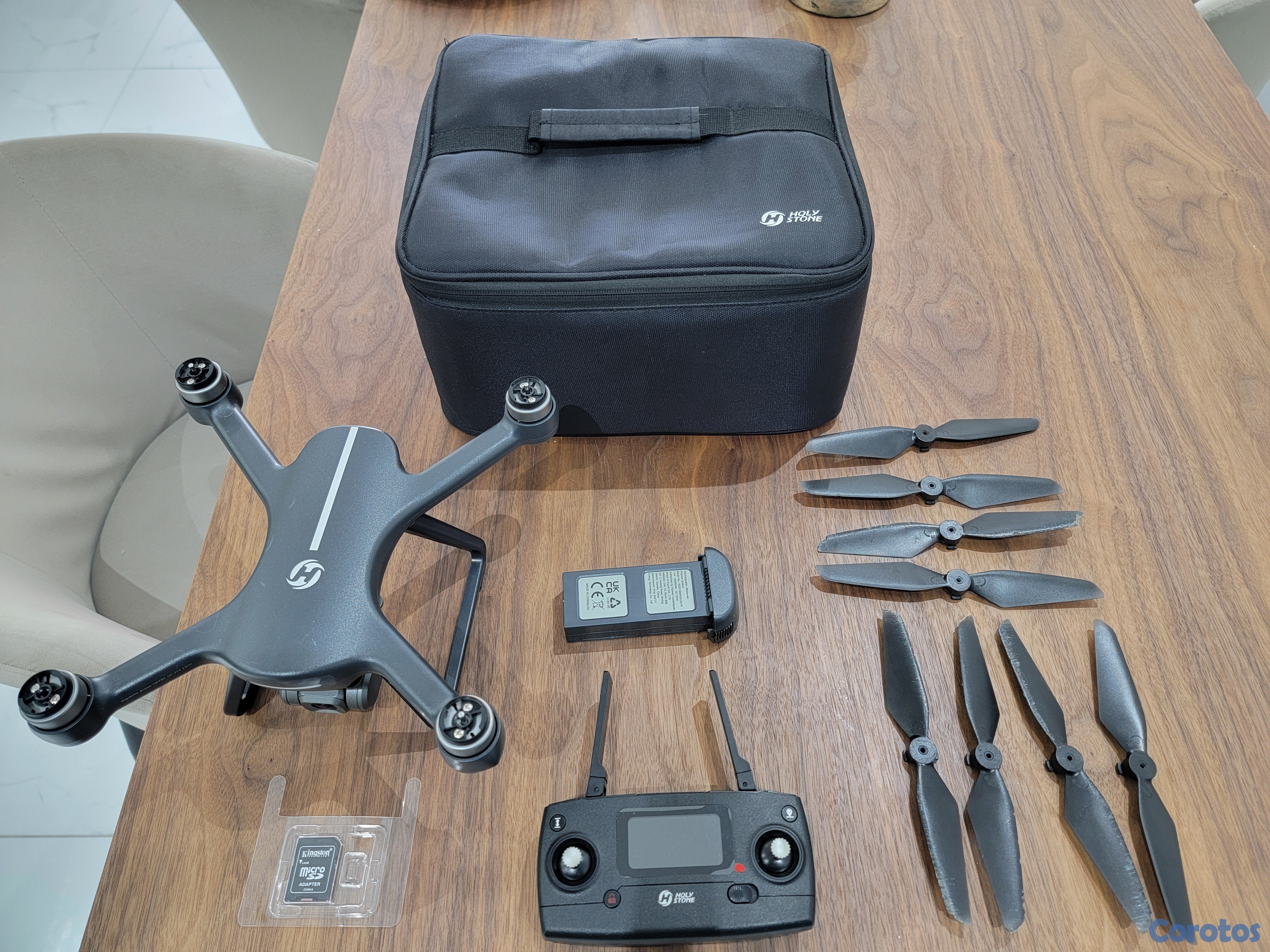 Drone Holy Stone HS700E. El drone está averiado. Puede ser adquirido para piezas o para reparar.La bateria y el control remoto funcionan correctamente.