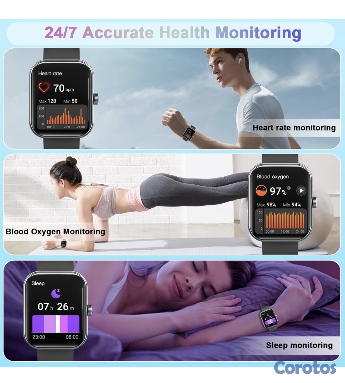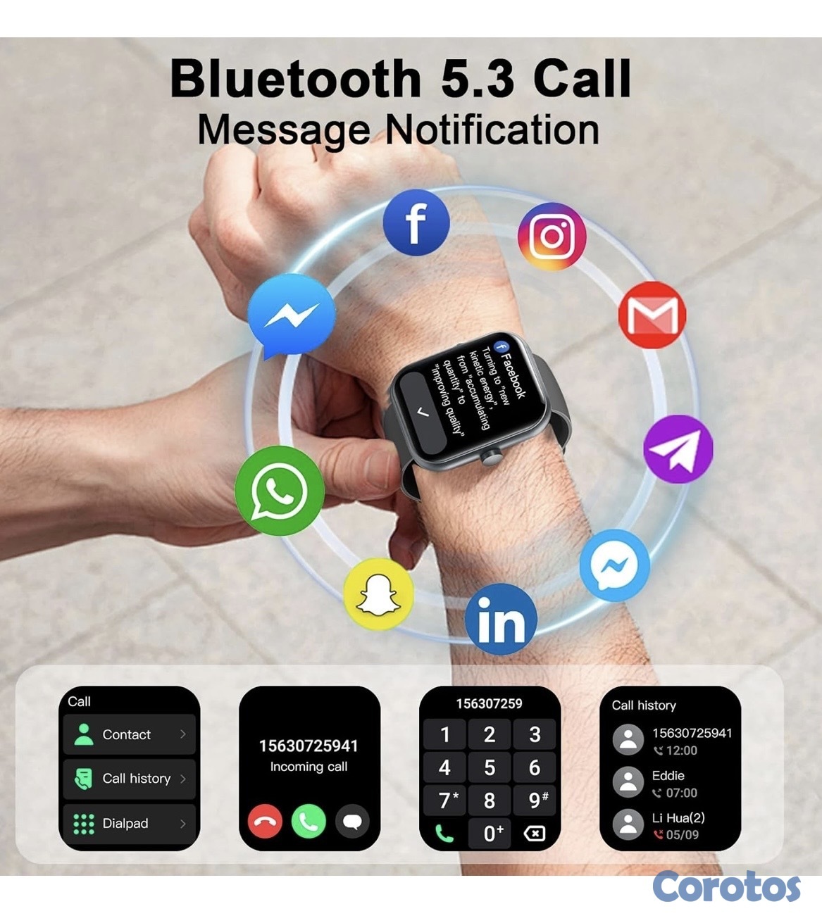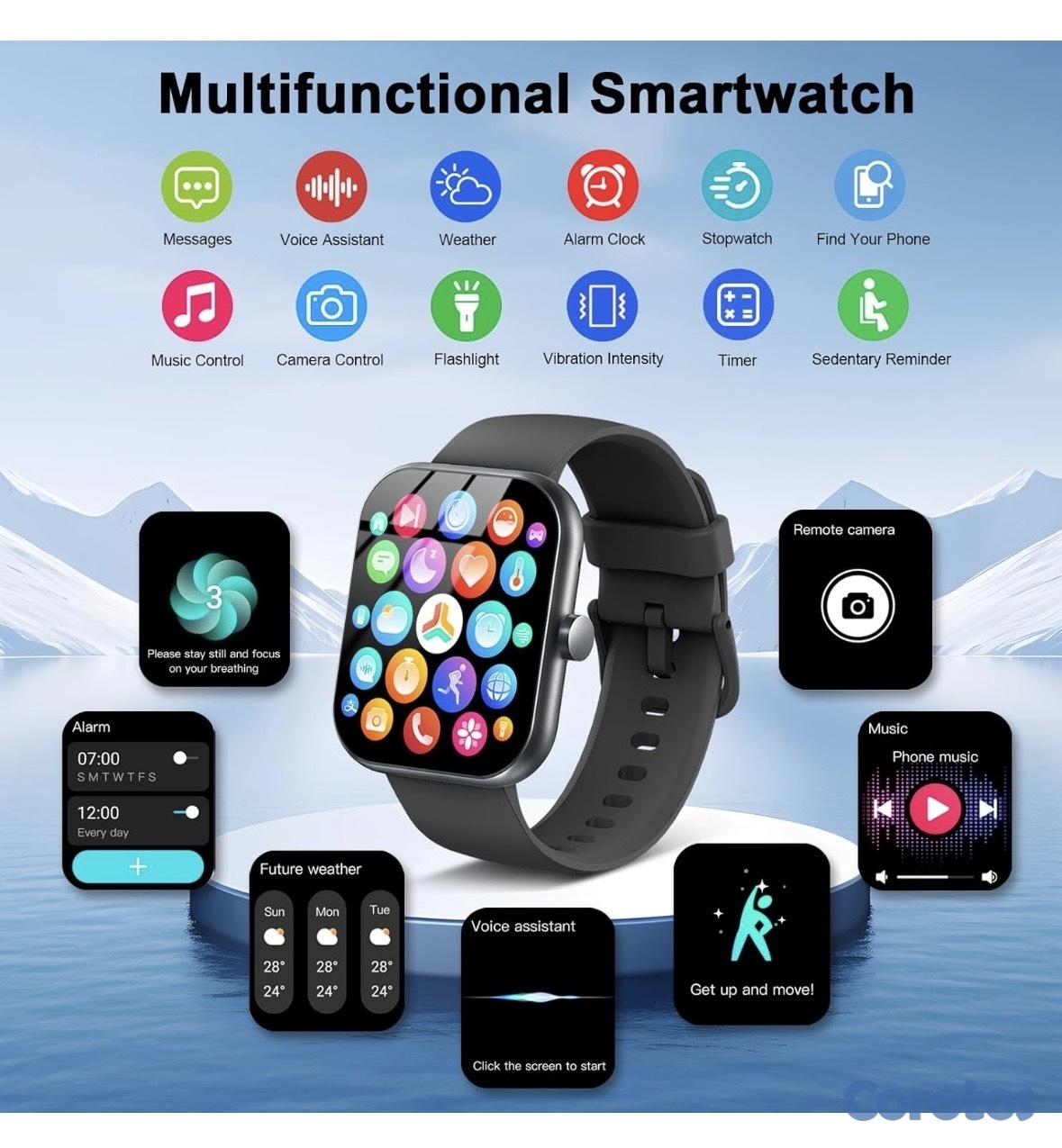 Responden/Realizan llamadas, Monitor de sueño 24/7, Notificaciones inteligentes, Rastreadores de actividad, Podómetro, Más de 110 modos deportivos, Despertador, Cronómetro, Temporizador, Control de música, Control de cámara, Pronóstico del tiempo, Recordatorio de sedentarismo, Salud y múltiples funciones más.
