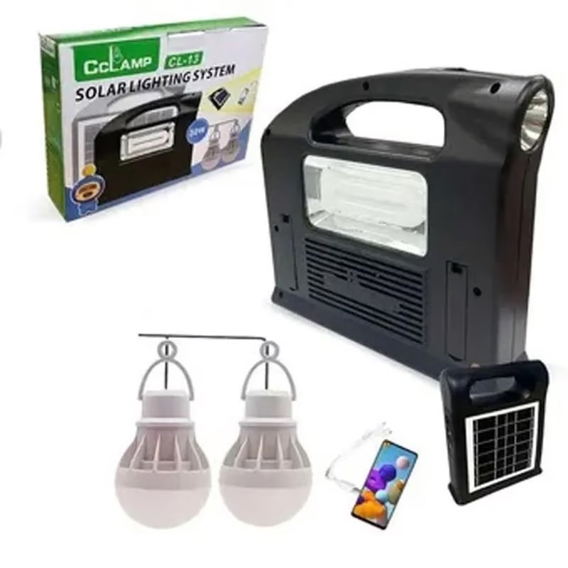 Linterna con panel solar y bombillos