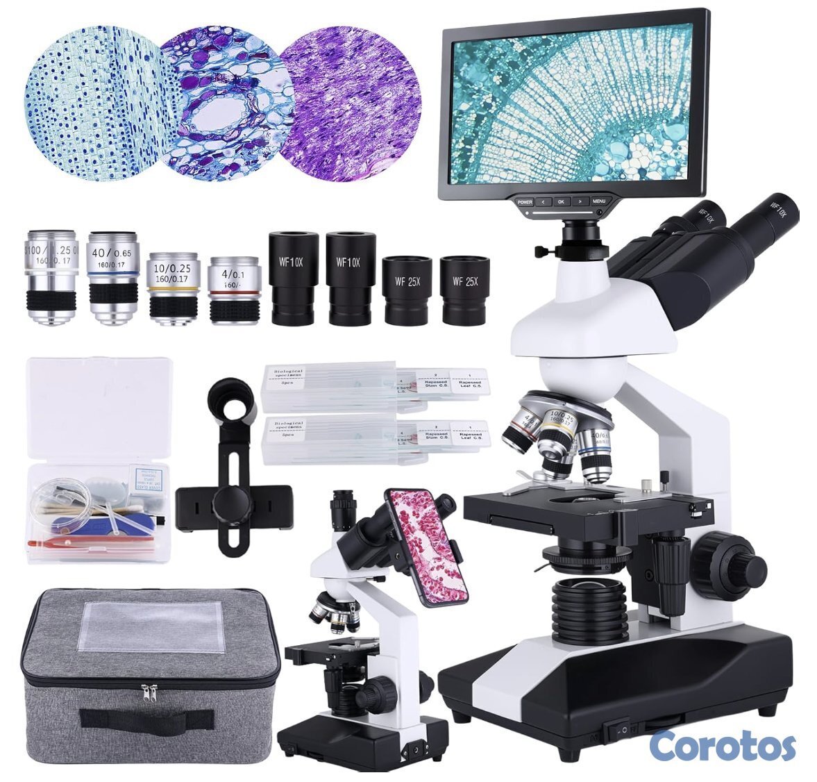 Permite observar desde estructuras básicas hasta detalles microscópicos avanzados, ideal para laboratorio, educación o demostraciones.
