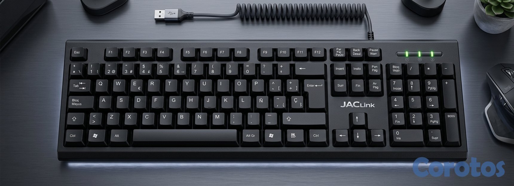 Indicadores LED de estado: Num Lock, Caps Lock y Scroll Lock.