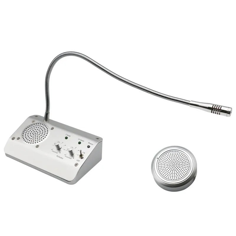 Intercomunicador de ventana con altavoz externo.
