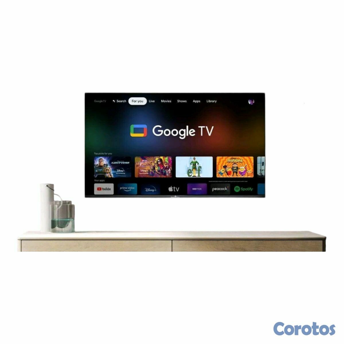 Cuenta con Google TV, asistente por voz, acceso rápido a plataformas como Netflix, YouTube, Disney+, Prime Video, Hulu, ESPN, Tubi y más.