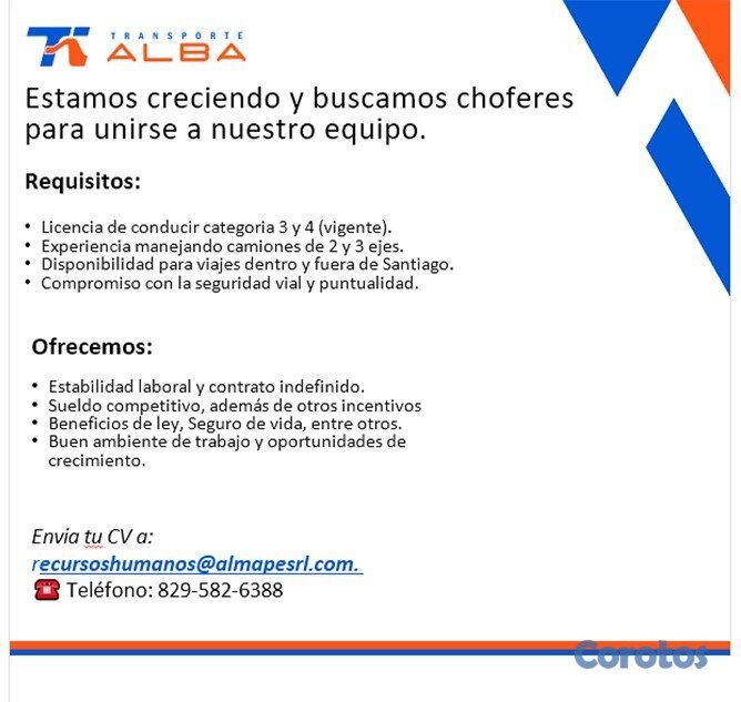 Ofrecemos estabilidad laboral, salario base, beneficios de ley, seguro medico entre otros.