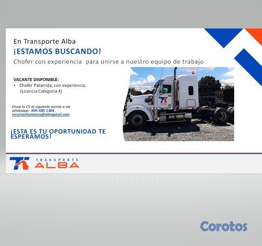 Buscamos un chofer con licencia categoría 4 vigente, con experiencia manejando doble cola.