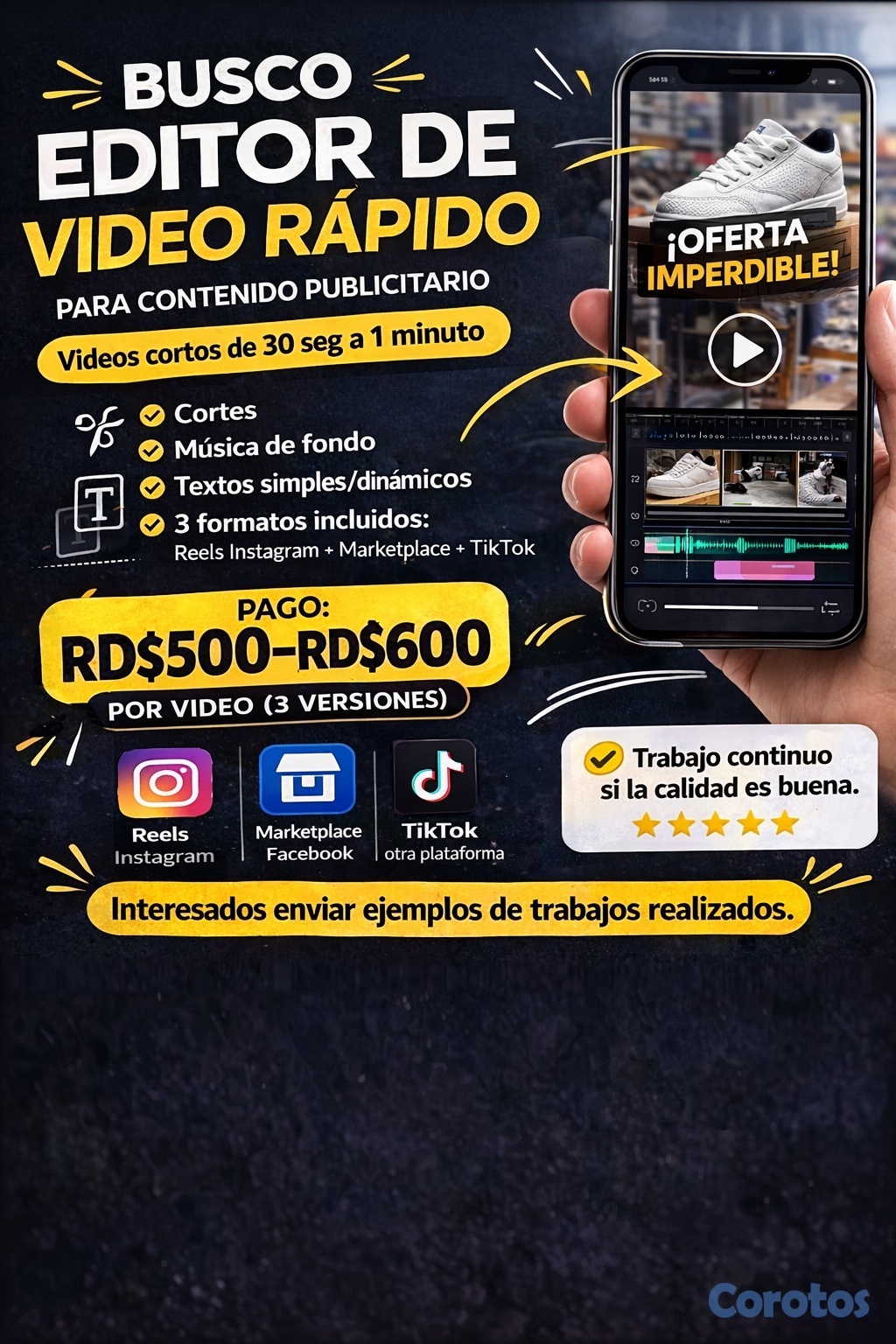 Pago: RD$500 a RD$600 por video.