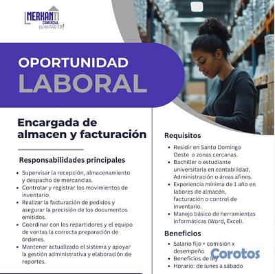 ENCARGADO (A) DE ALMACEN Y FACTURACION EN HAINA