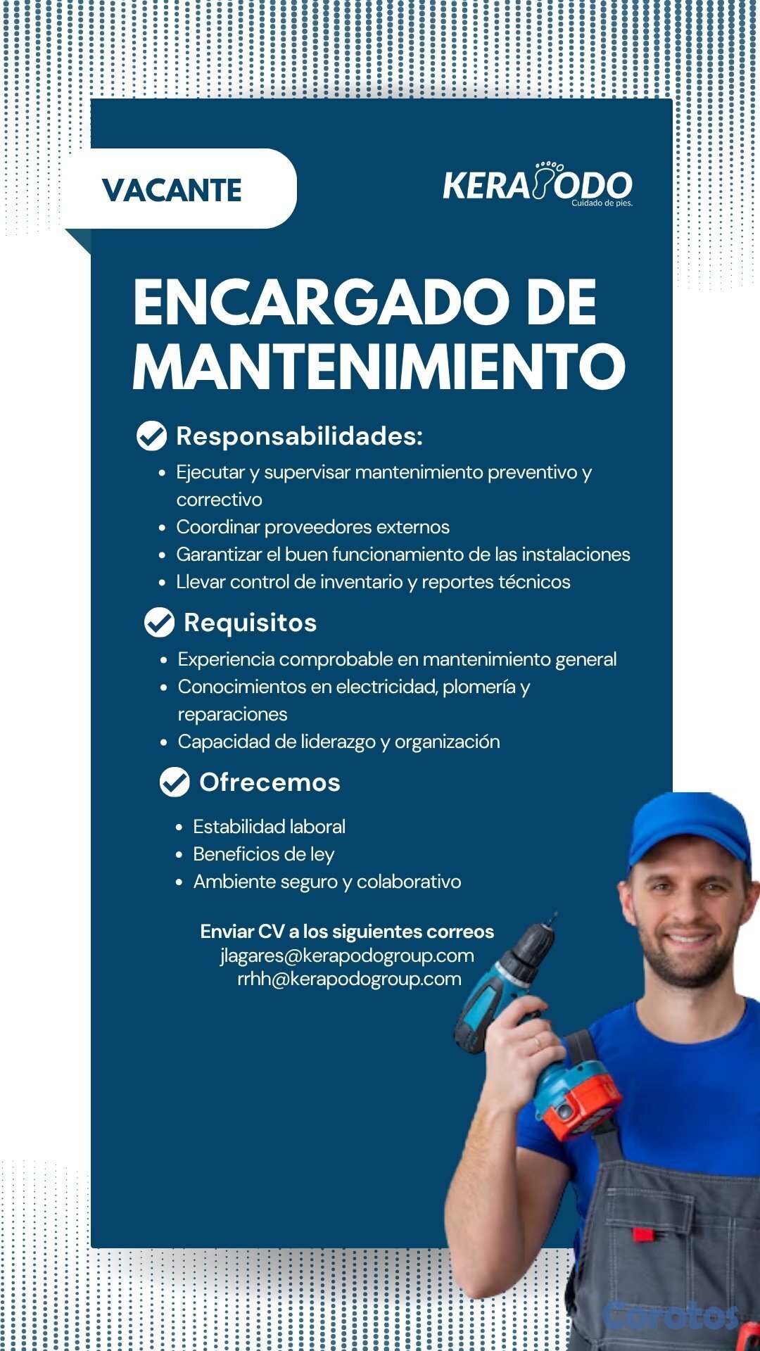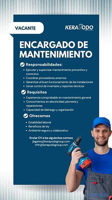 Kerapodo Group SRL requiere un Encargado de Mantenimiento proactivo, organizado y con capacidad de supervisión.