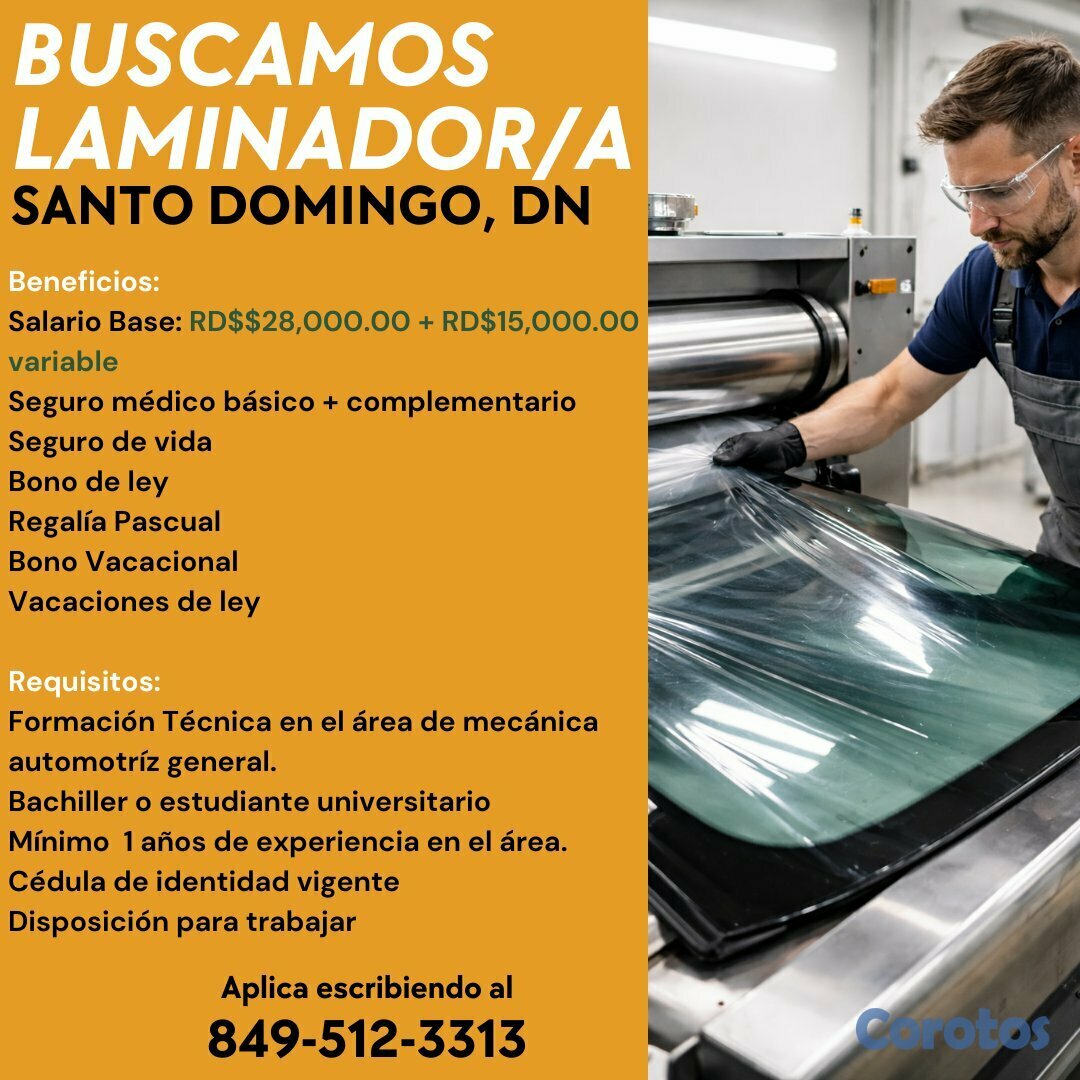 -Mínimo año de experiencia en posiciones de laminado.