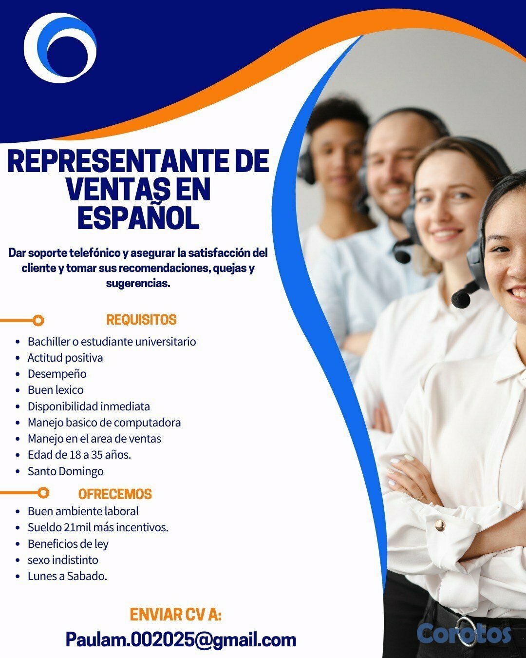 Buscamos un/a Representante de Ventas en Servicio al Cliente dinámico/a y orientado/a a resultados, con excelentes habilidades de comunicación y pasión por brindar una experiencia excepcional a nuestros clientes.