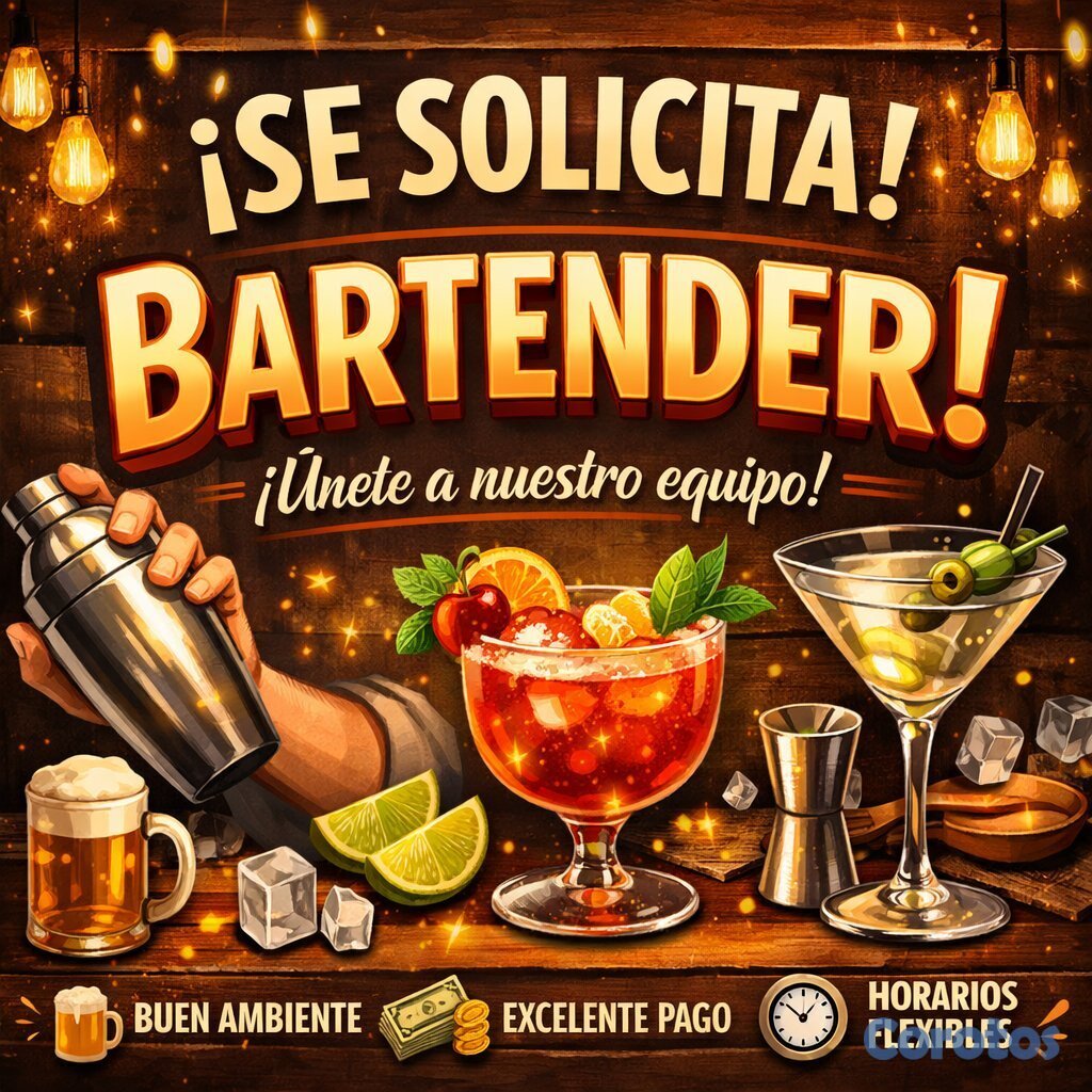 Solicito bartender, para restaurante cóctel del mar, avenida Charles de gaulle.