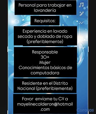 Se solicita empleada para trabajar en una lavandería