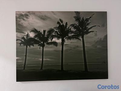 Cuadro decorativo de pared "Palmas En La Noche III" del artista Tang Ling, Estilo Fotografía en blanco y negro, Siluetas de palmeras en una playa tropical durante el anochecer, Material: Lienzo (canvas), Medidas: 162.56 cm ancho x 121.92 cm alto.