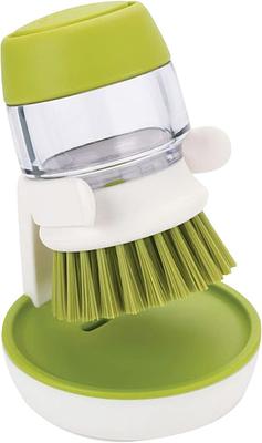 【Fácil de usar】El cepillo de cocina es fácil de abrir y rellenar el detergente, chorro de detergente con solo pulsar el botón en la parte superior.