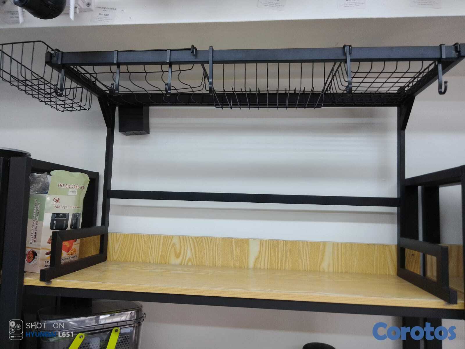 El estante de almacenamiento sobre el fregadero puede acomodar hasta 10 platos, 16 cuencos, 8 vasos y más.