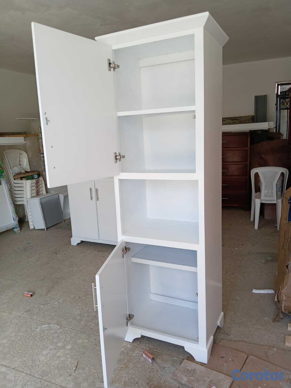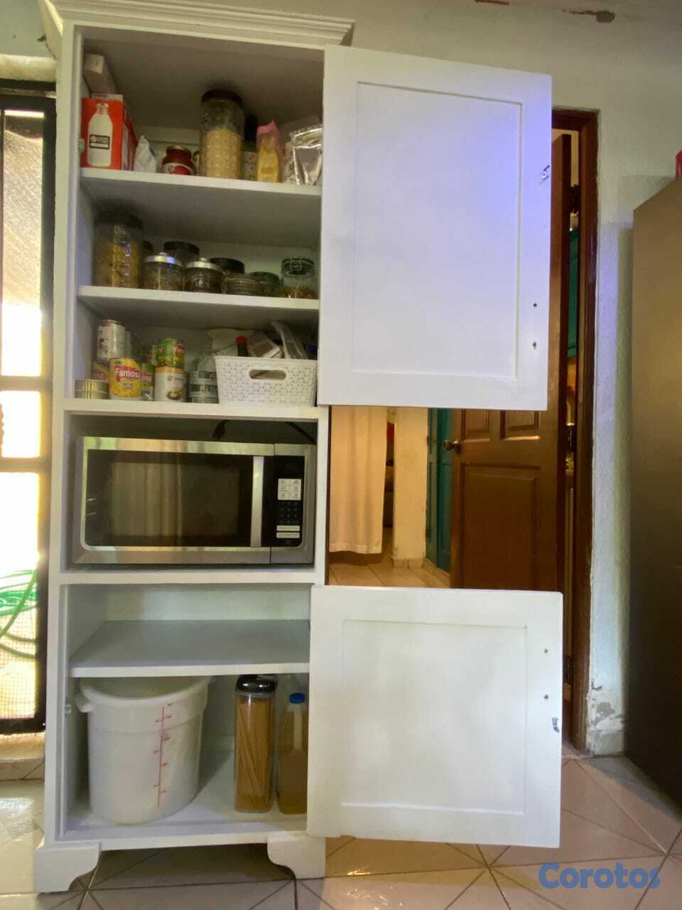 Esta despensa blanca con espacio para microonda es ideal para mantener tu cocina ordenada y bonita. 🤍