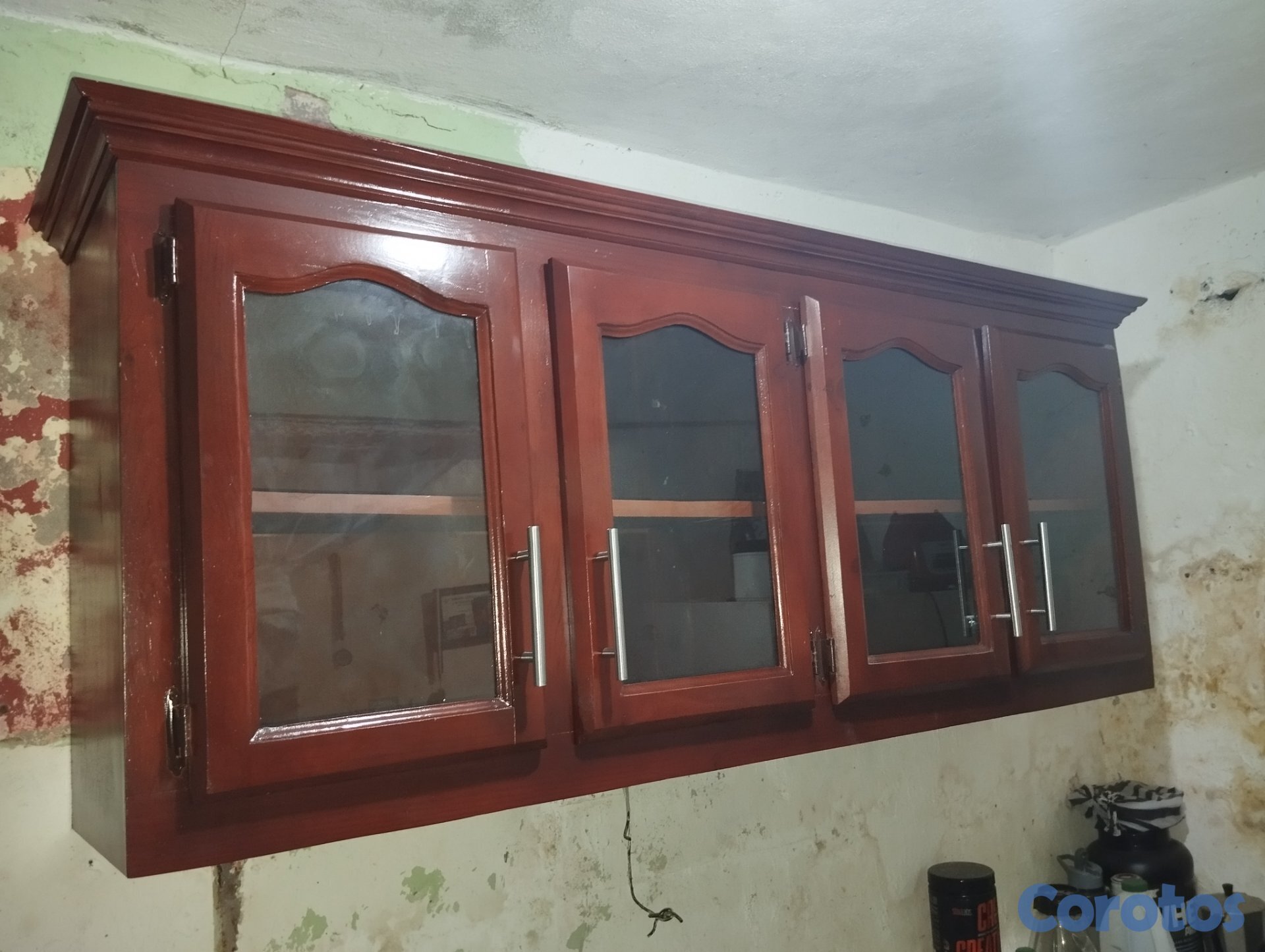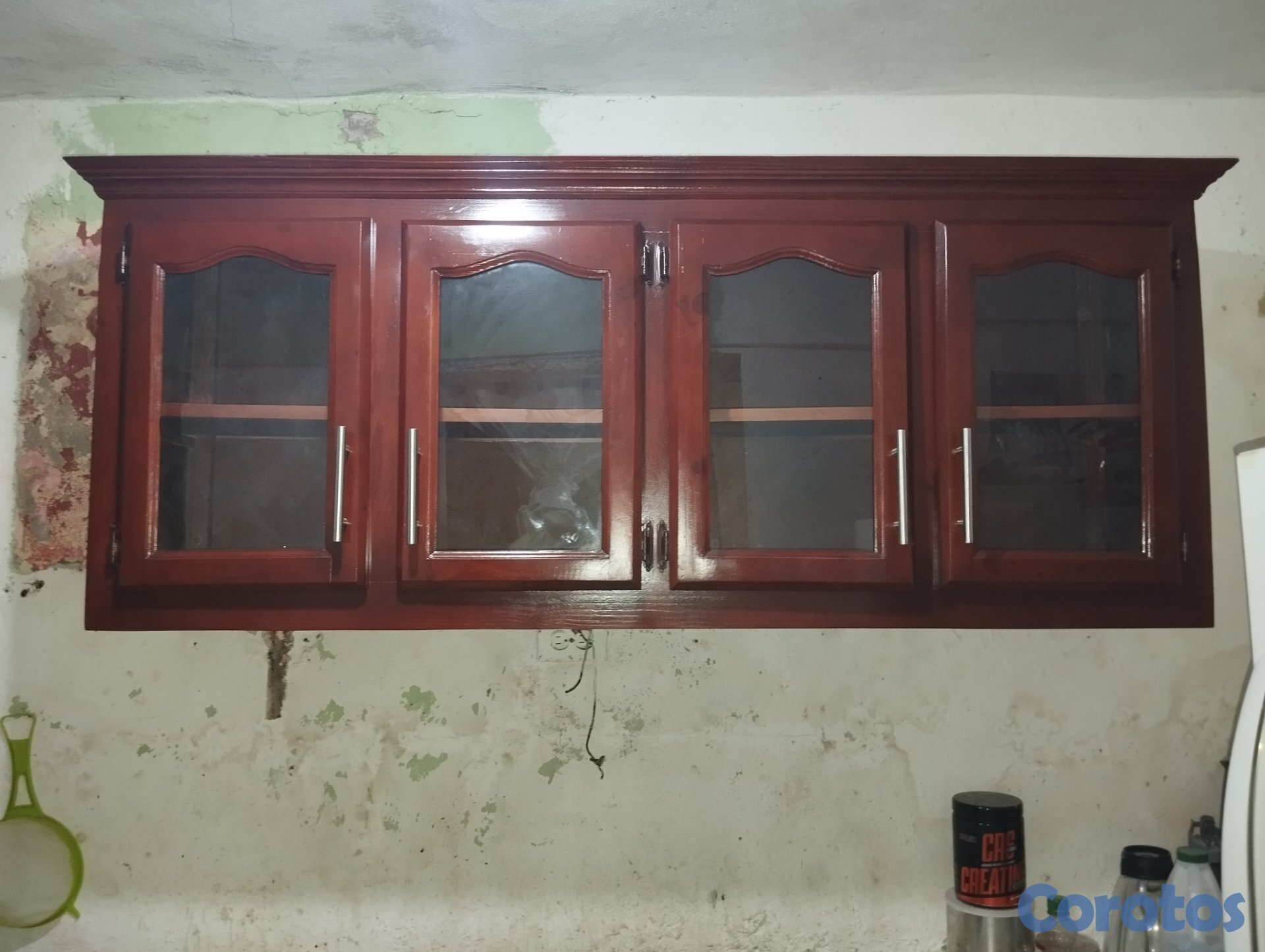 Gabinete en madera con cristal de cocina