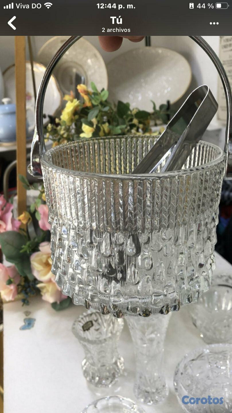 hielera antigua , importada ,cristal trabajado a mano, excelente condición