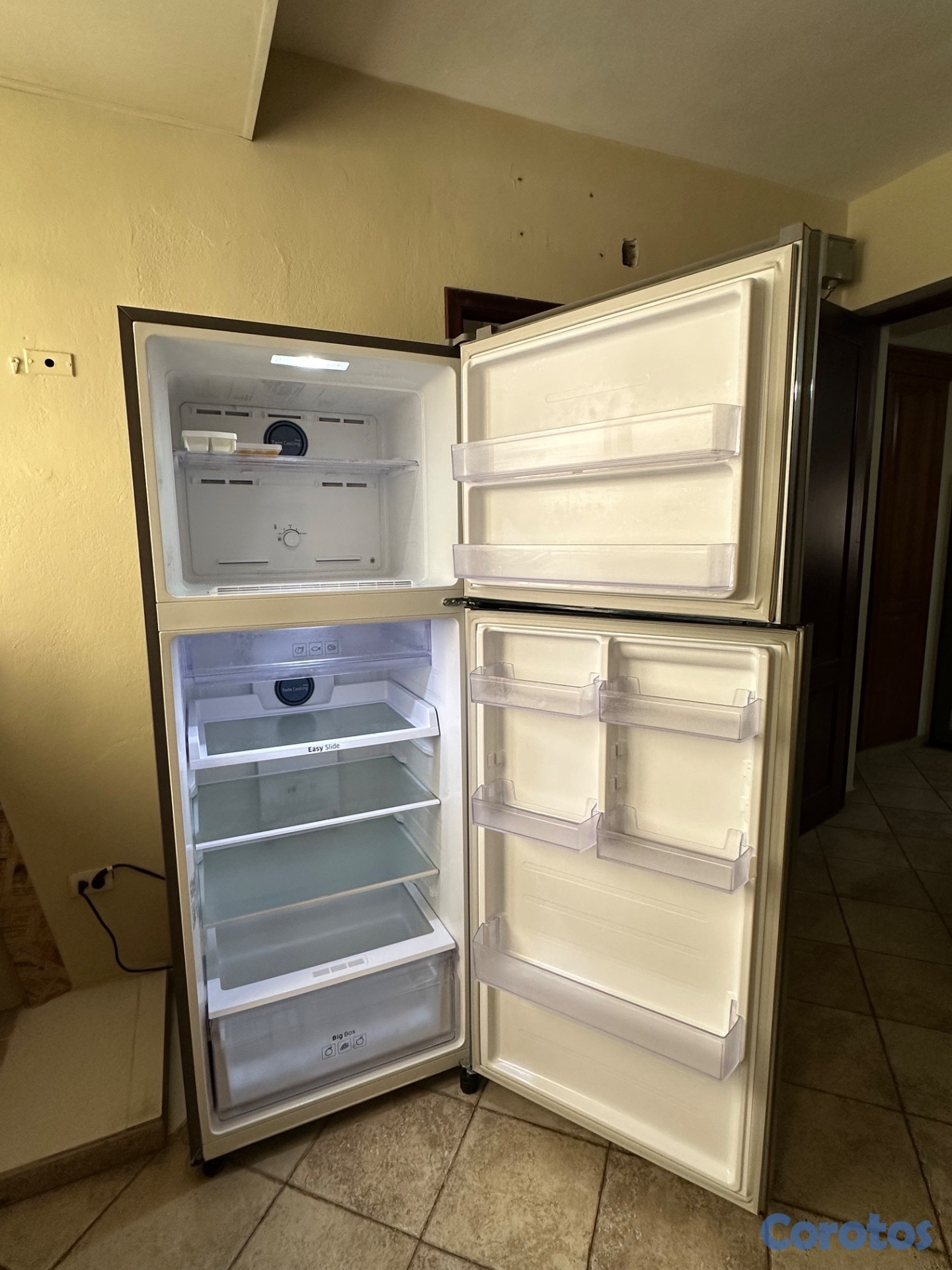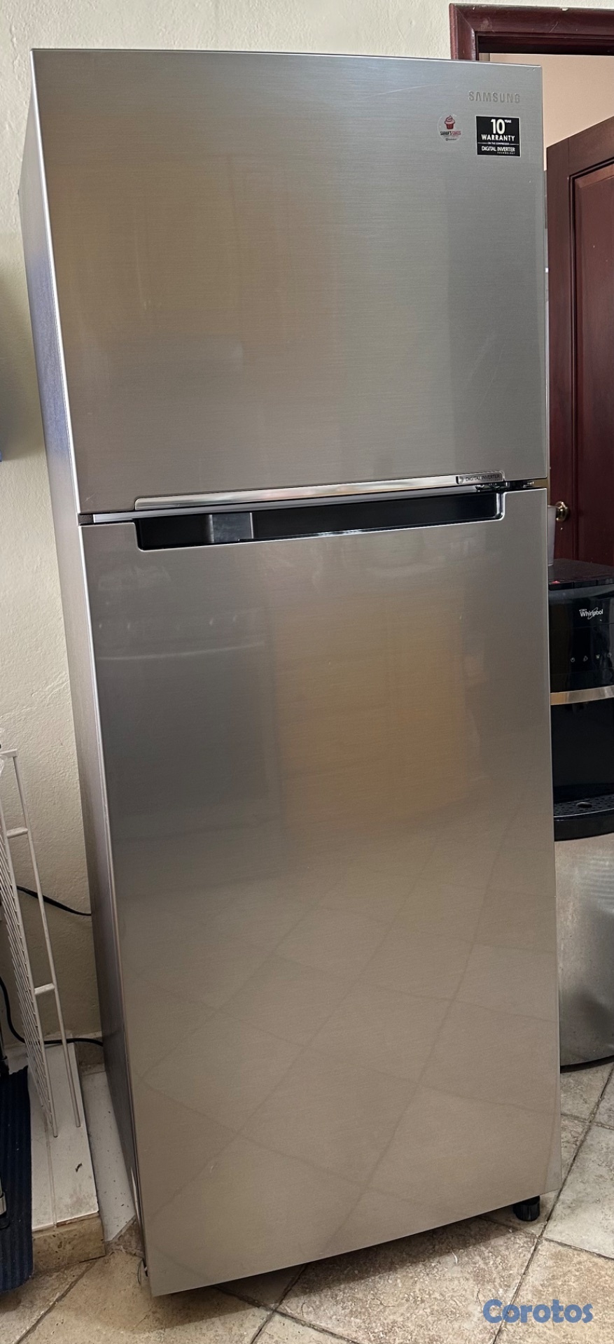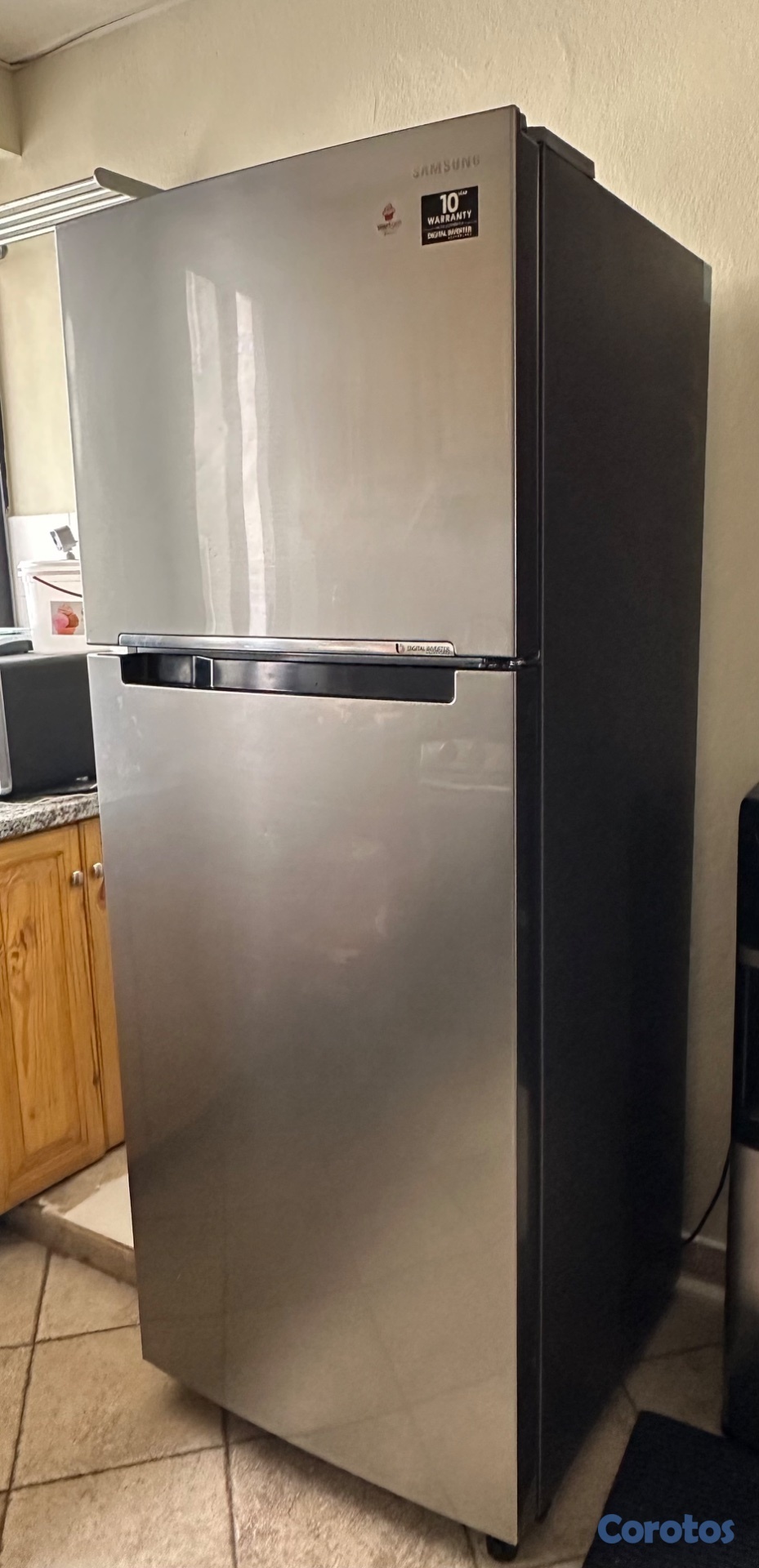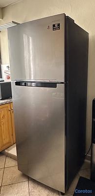 Nevera Samsung como nueva de 16 pies 3. Refrigerador y congelador independiente. Sistema de deshielo automático. Ahorro de energía. Gris y acero inoxidable.