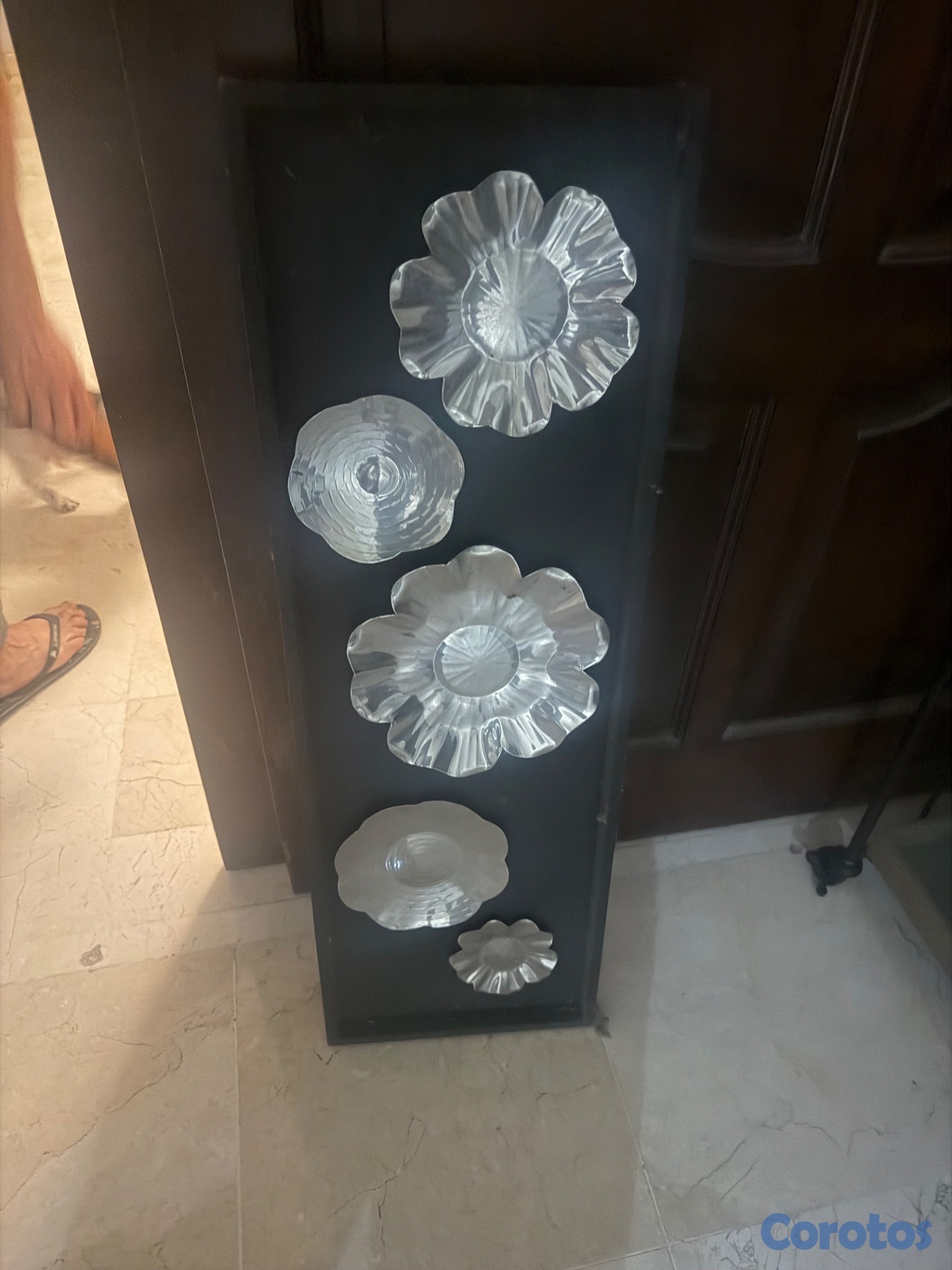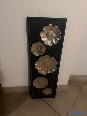 Aplique pared negro con flores en metal plateadas