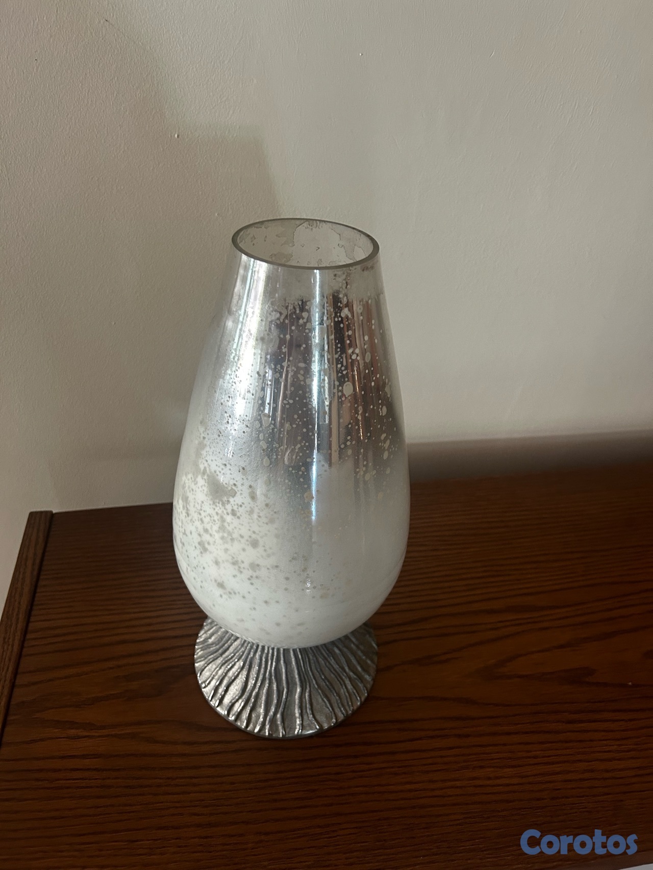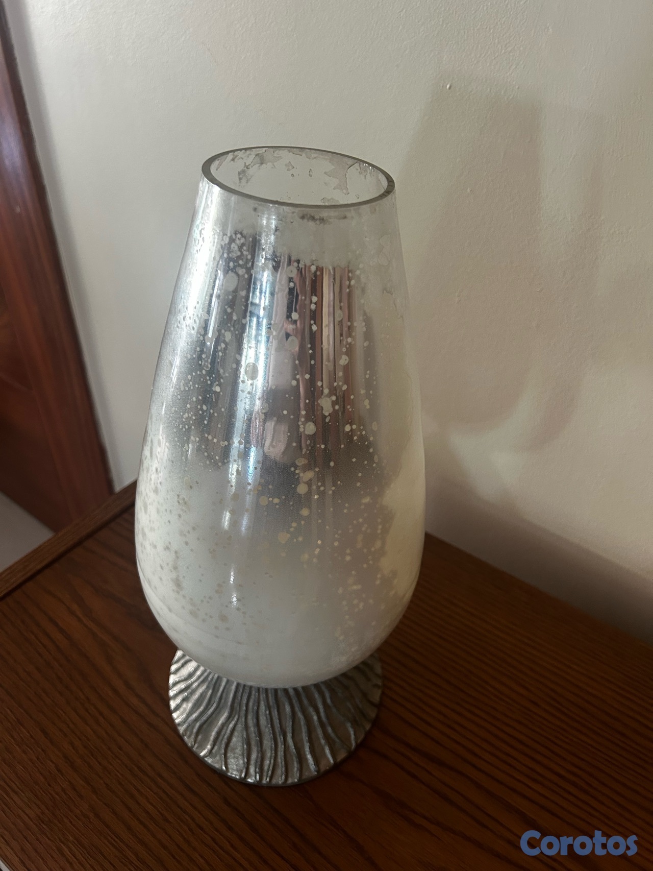 candelabro o adorno, color crema con base plateada en buenas condiciones