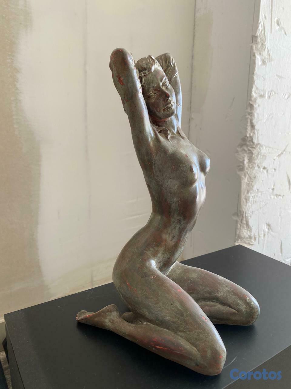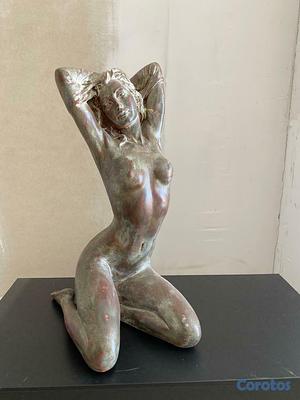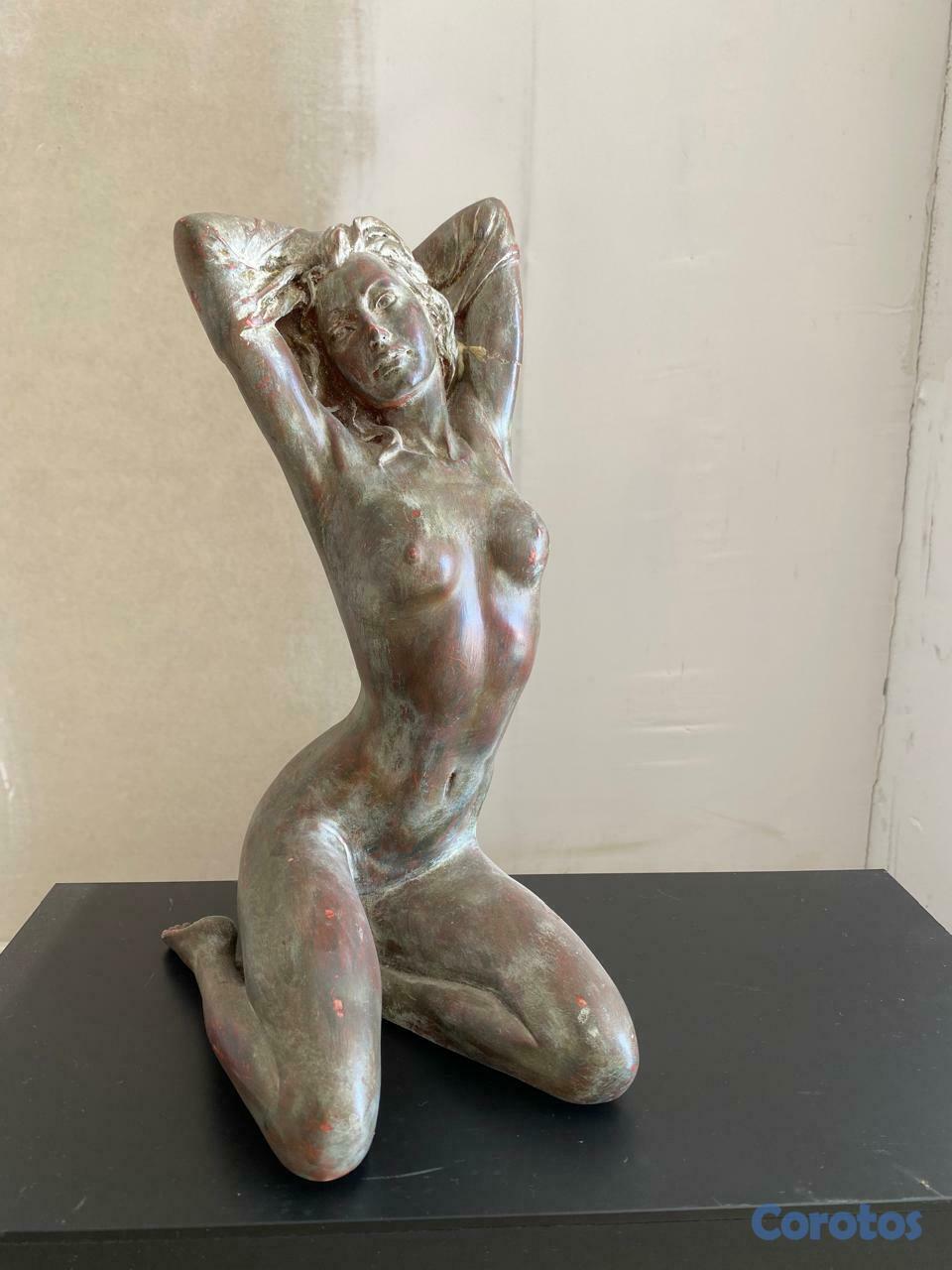 escultura forjada en metal de mujer desnuda de aprox 1 pie de alto