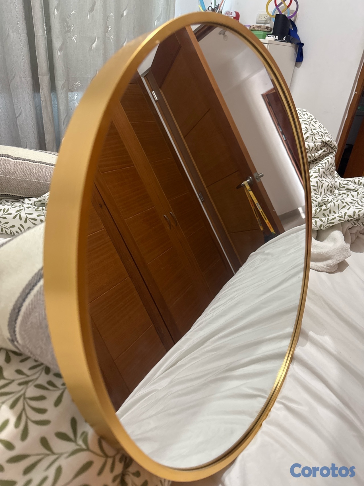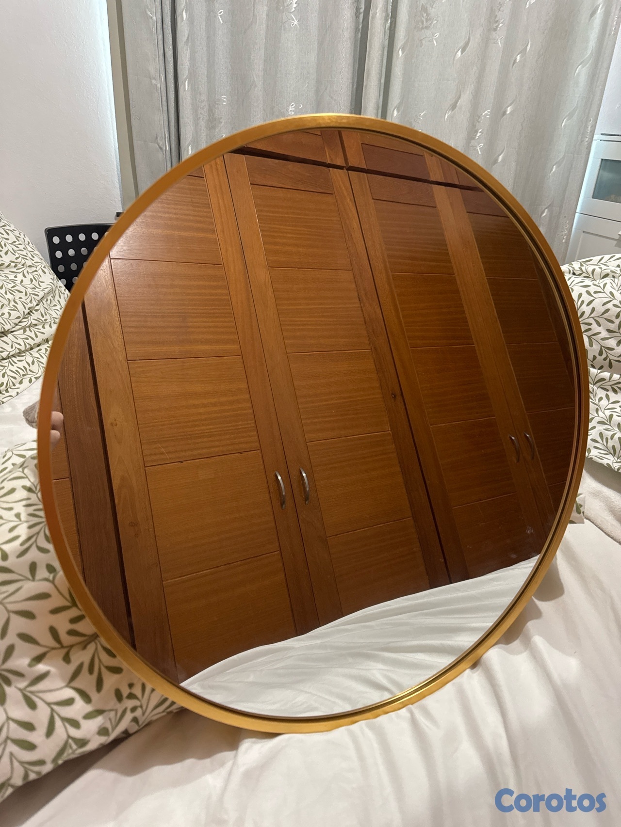 Espejo dorado circular mediano para decorar