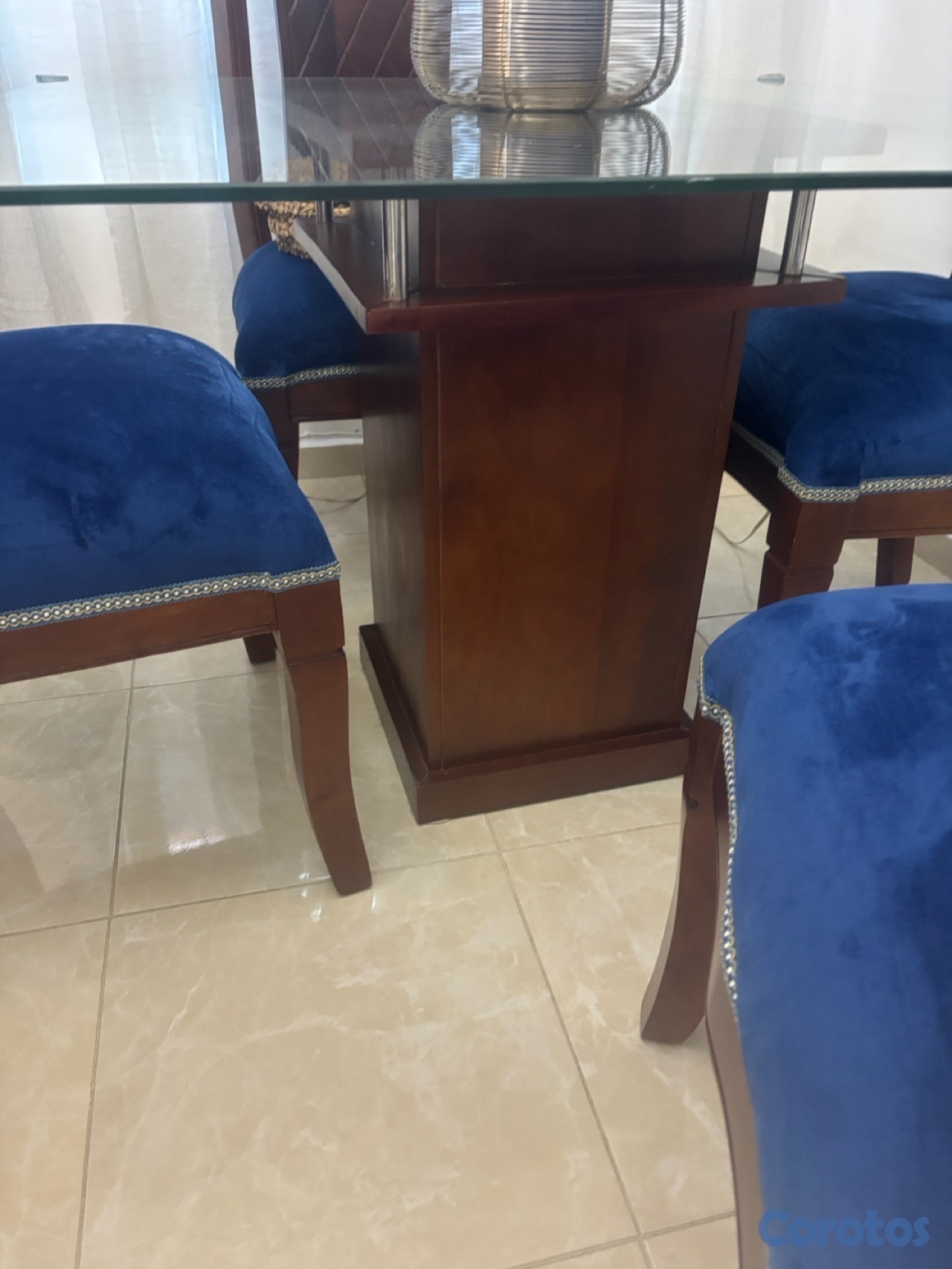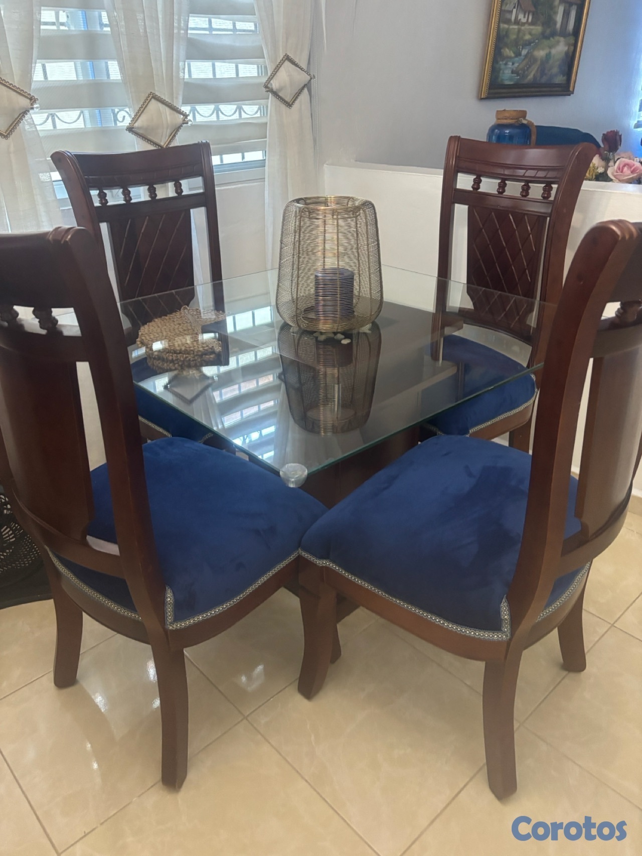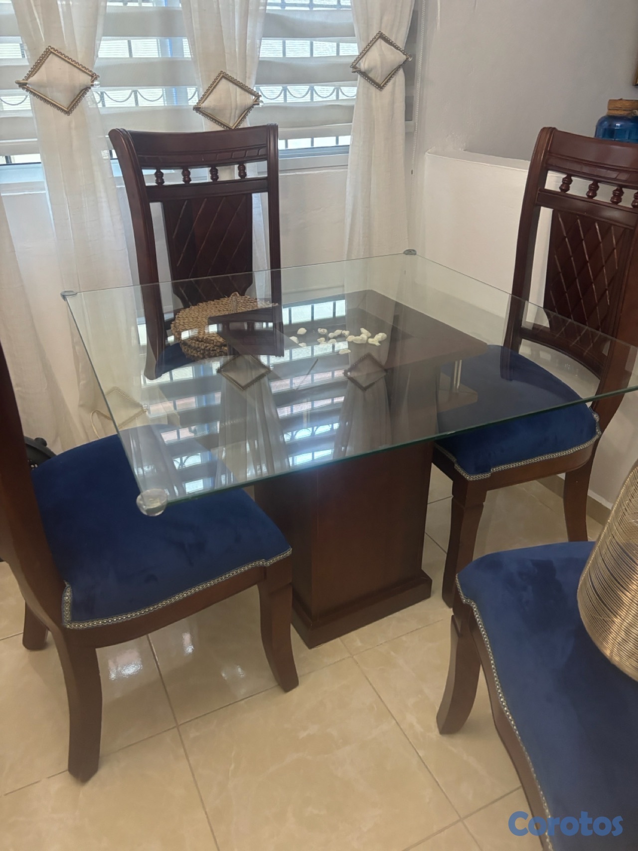 juego de comemedor mesa de cristal cuadrado 4 silla