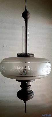 Lámpara Colgante Bronce y Cristal Grabado