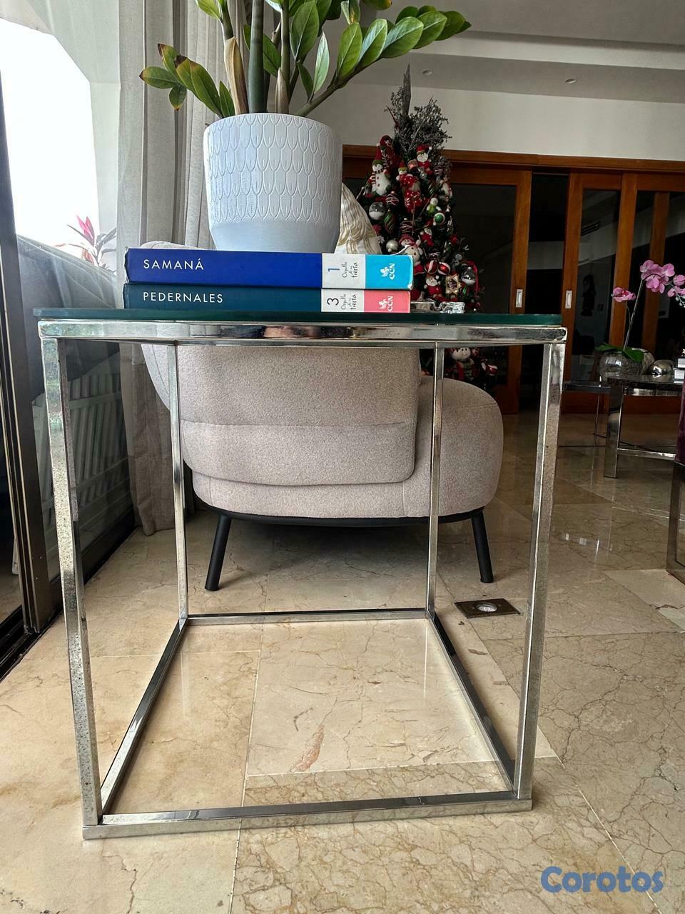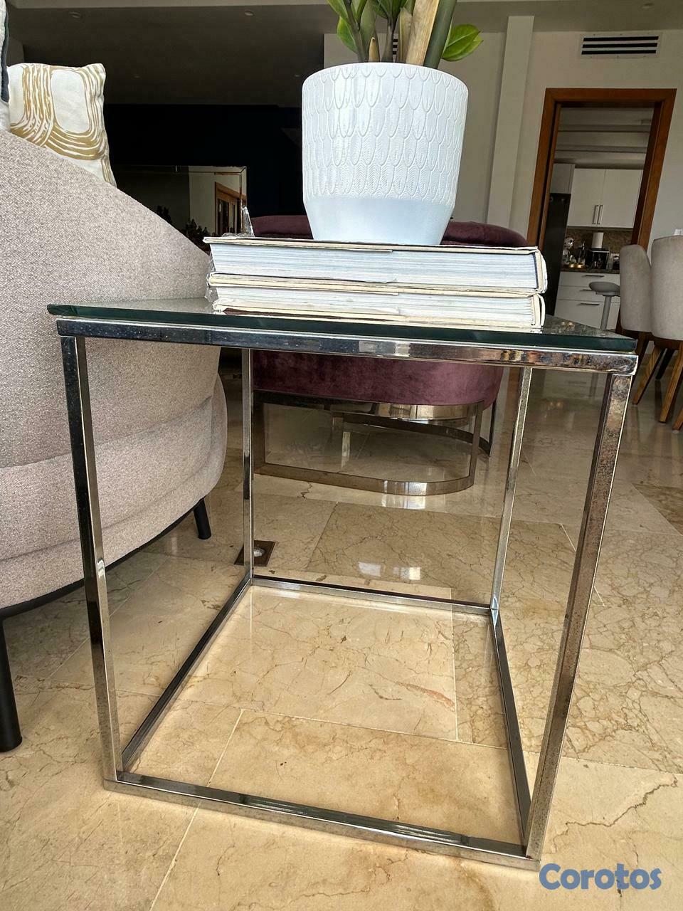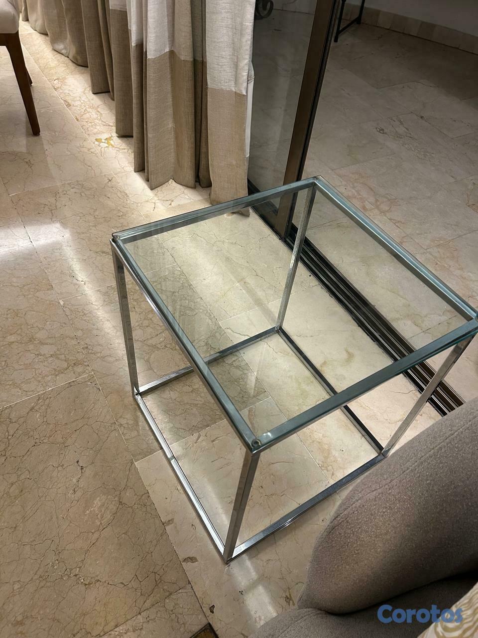 Mesa cuadrada en inox y cristal