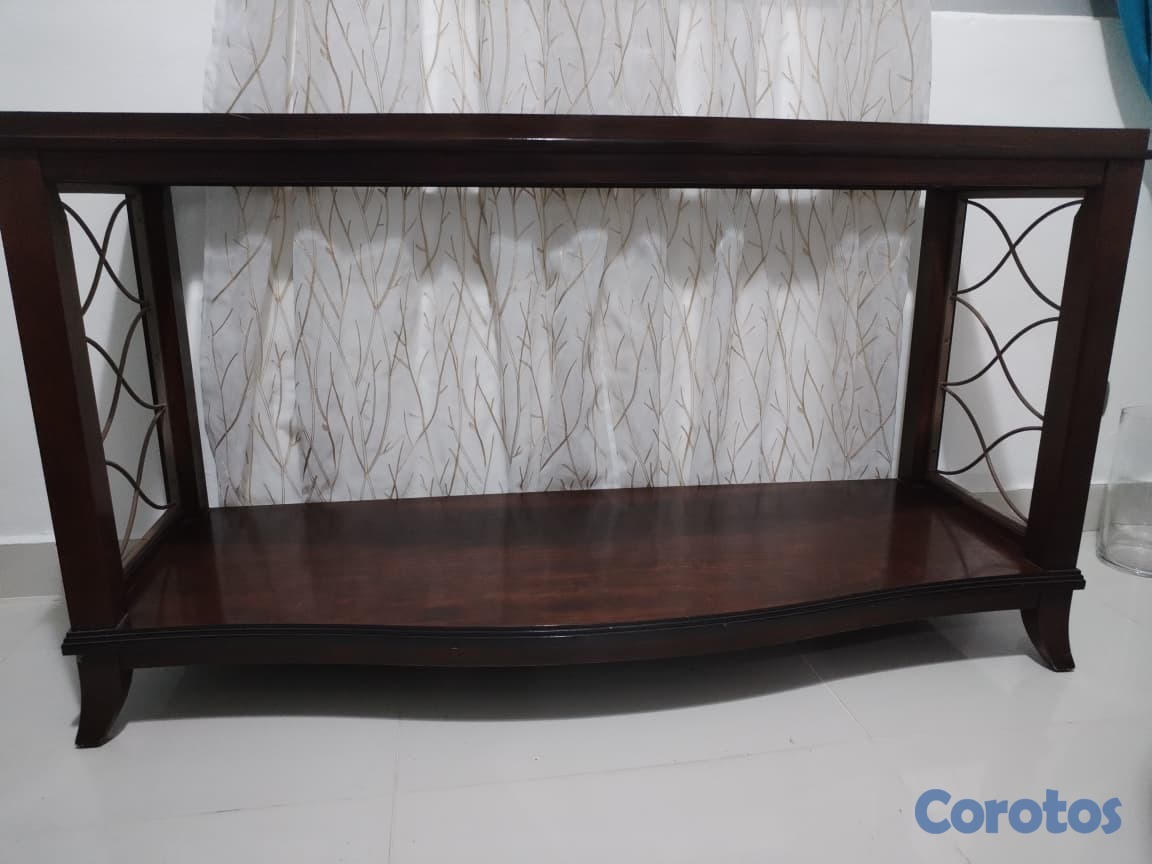 Mesa decorativa de caoba con tope de vidrio, en excelente estado.