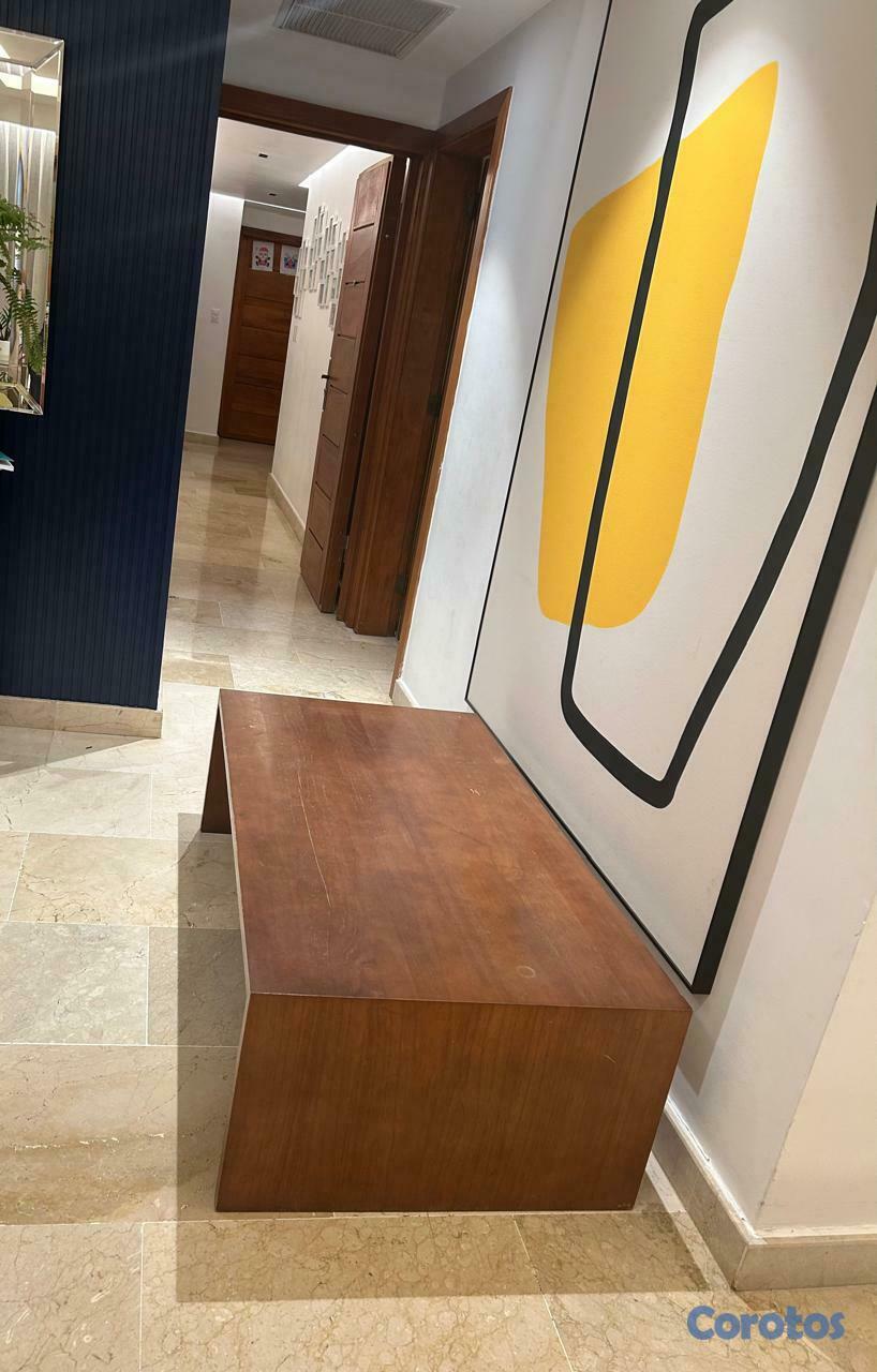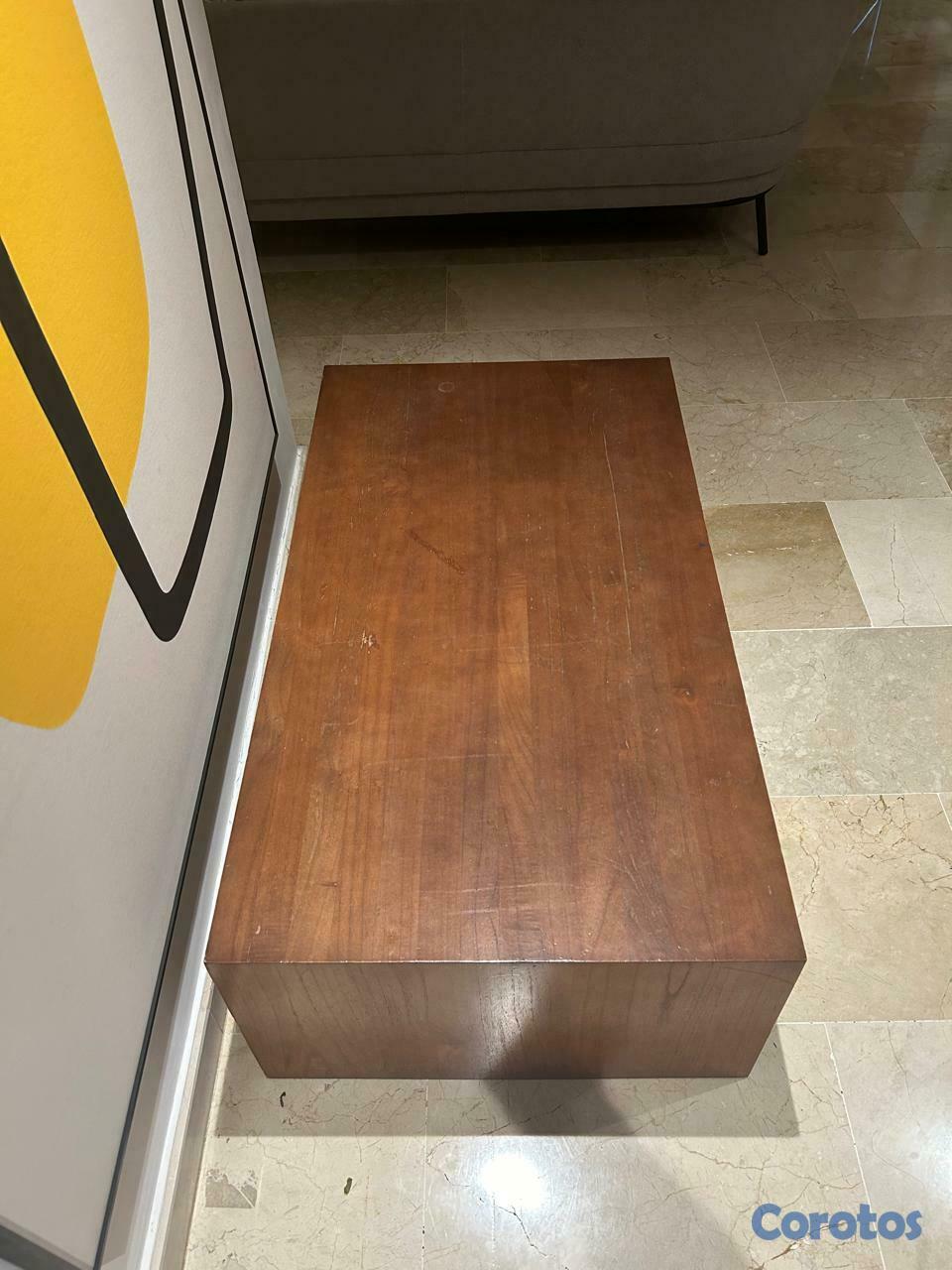 Una mesa rectangular de caoba medida 50 cm de largo x 16 cm de alto