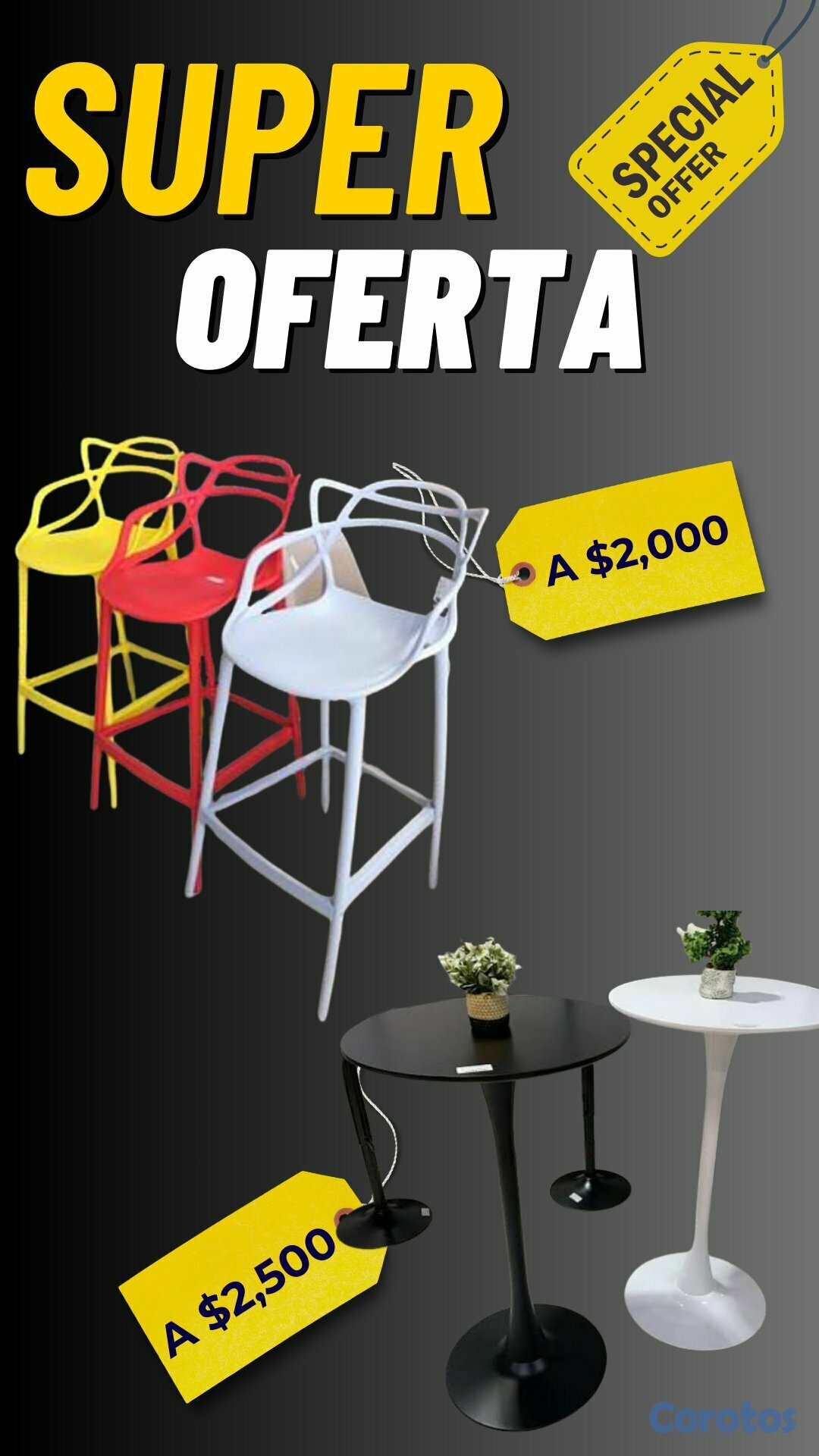 Taburete a 2,000 y mesa alta 2,500