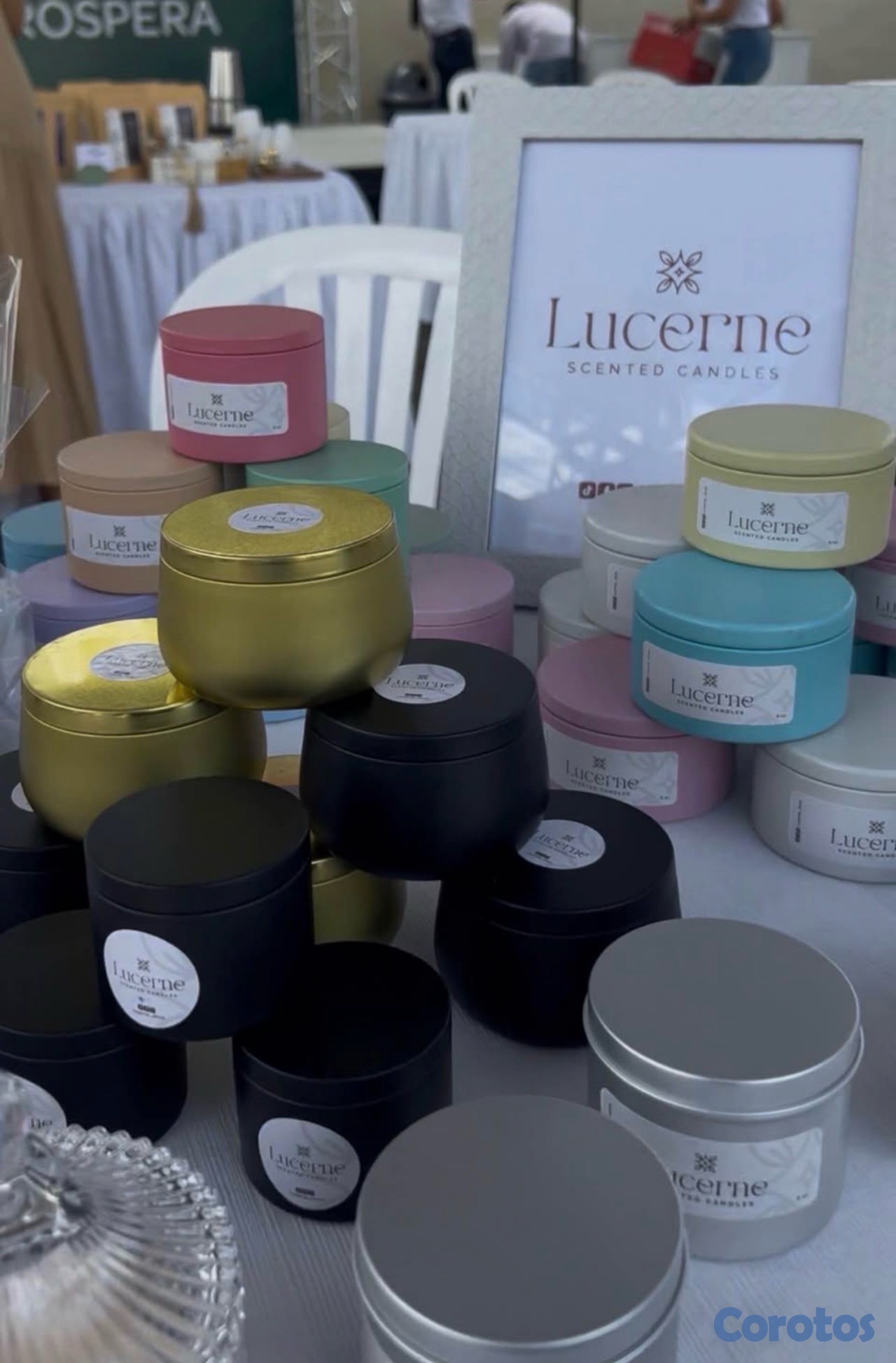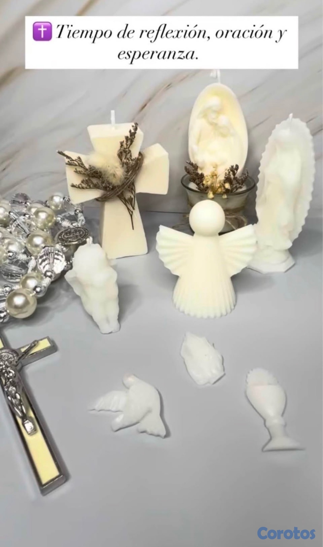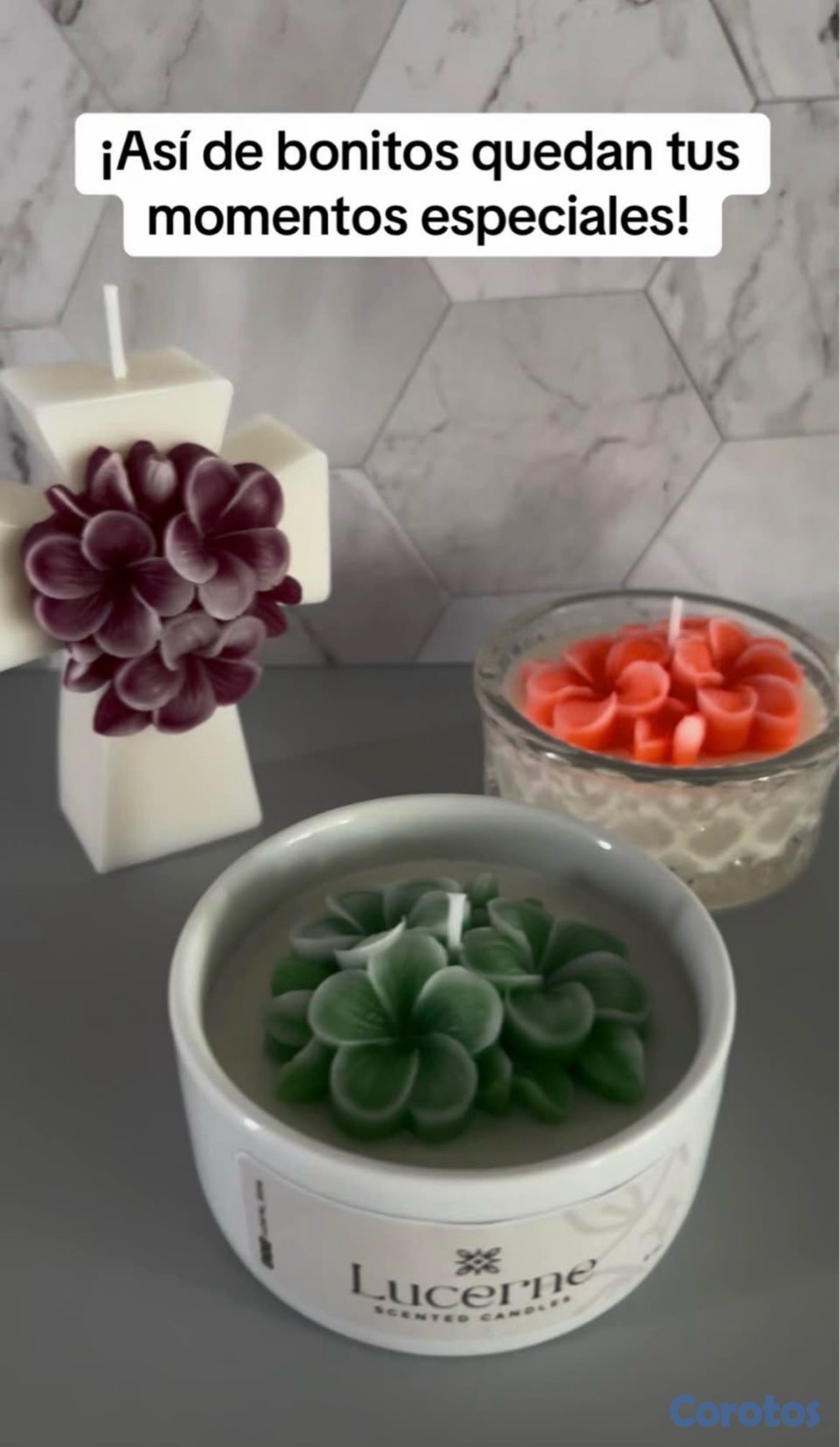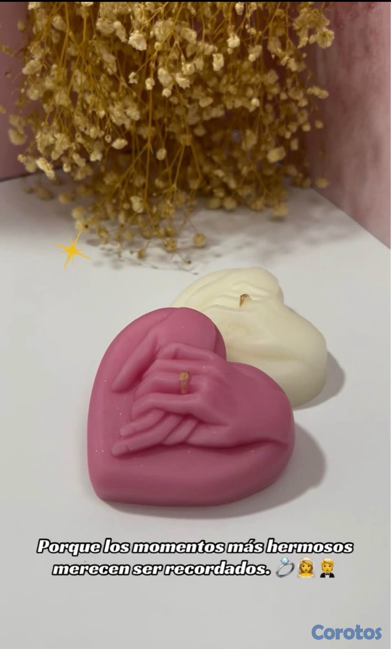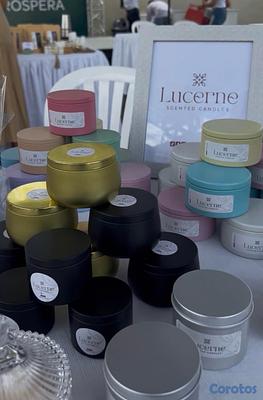 Velones artesanales con esencia y línea de souvenirs.