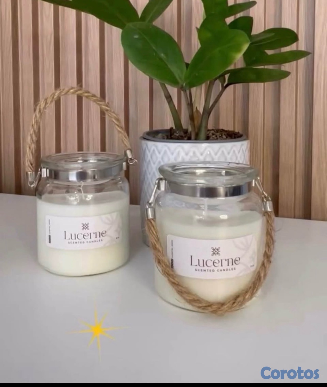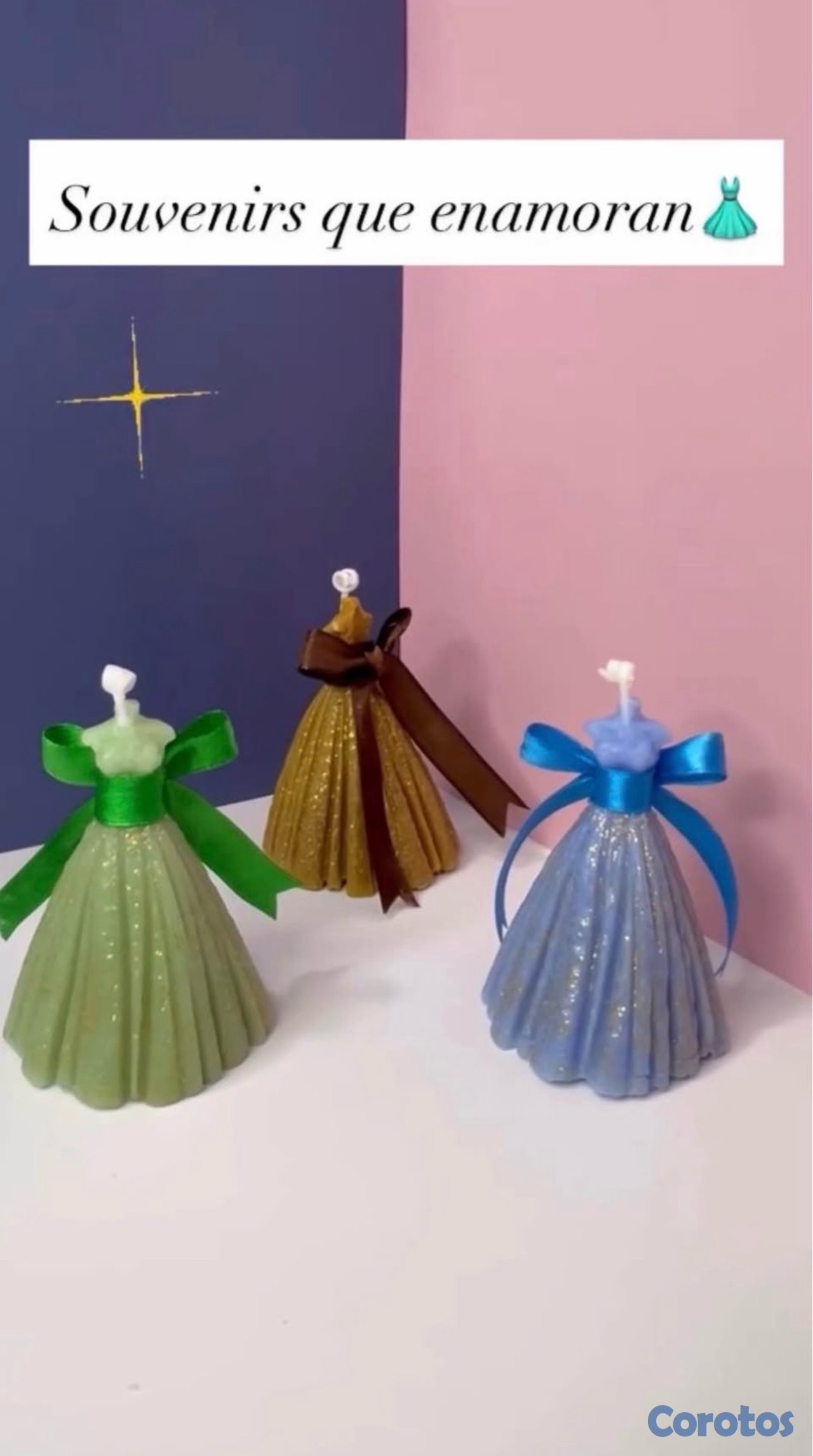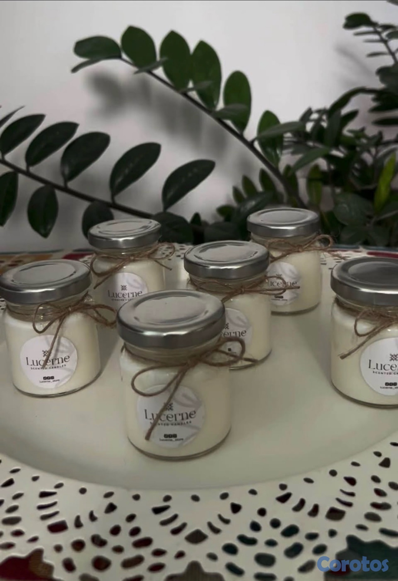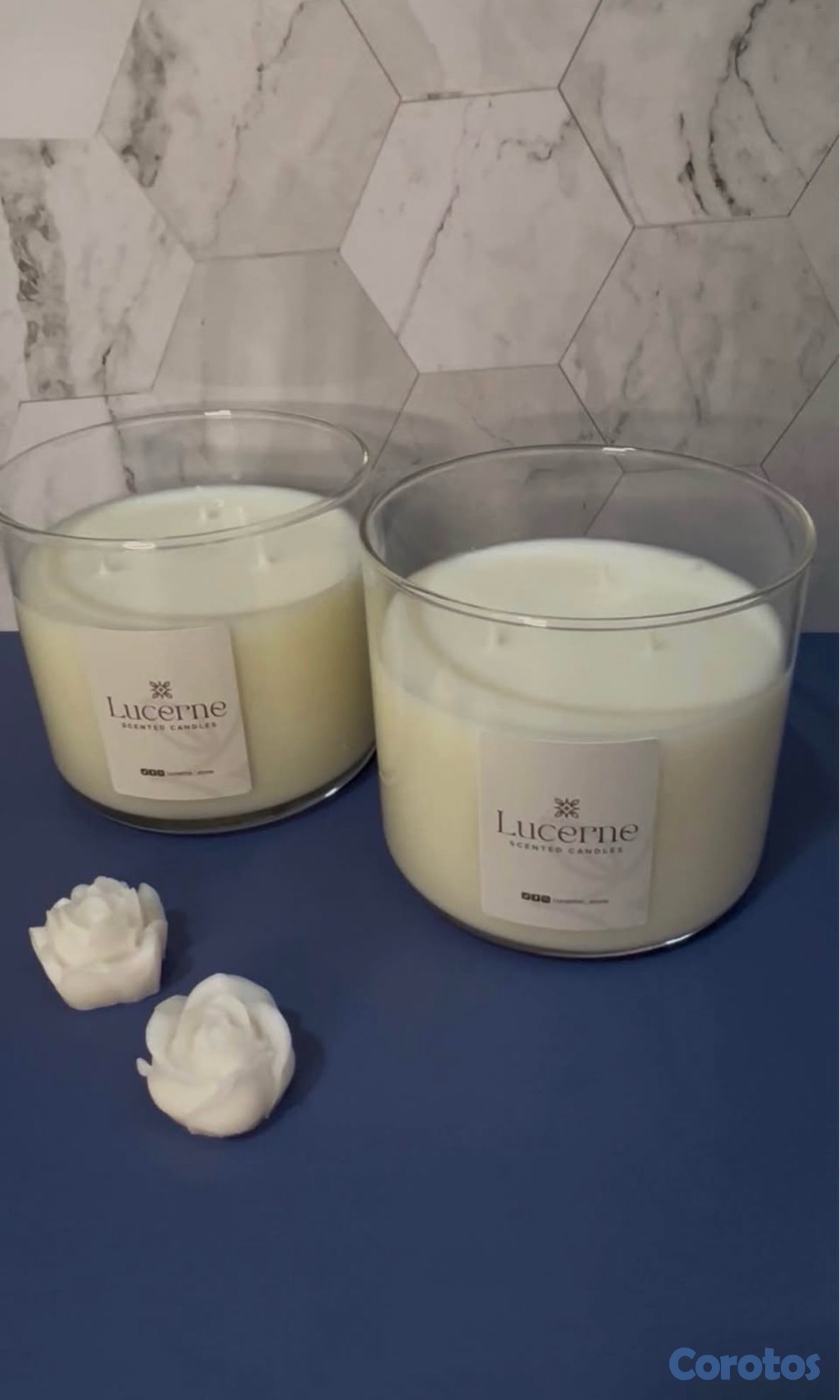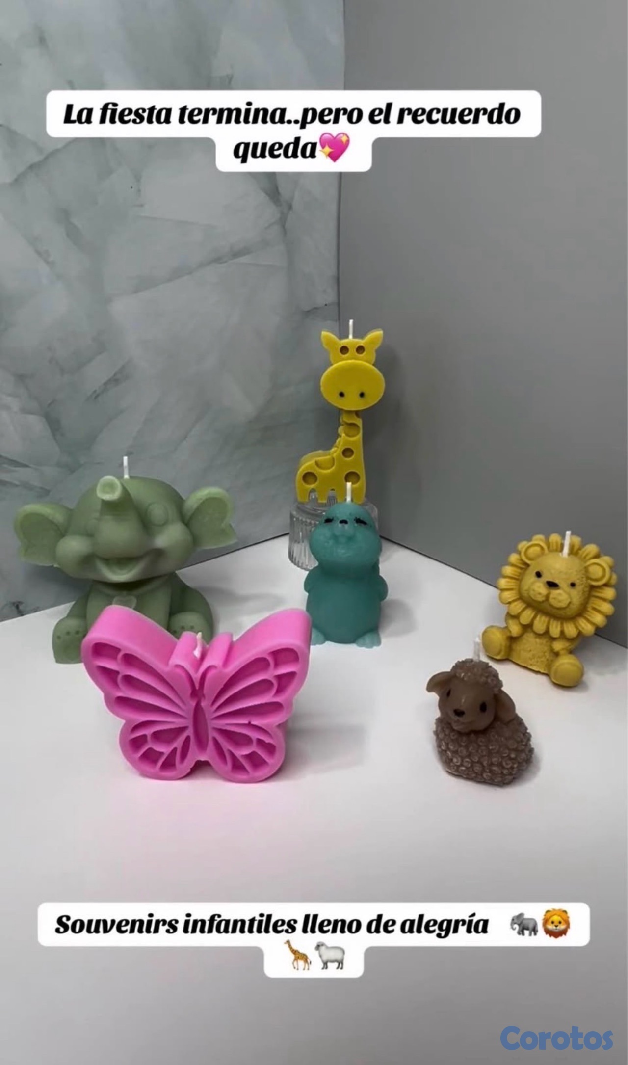 Velones artesanales con esencia y línea de souvenirs.