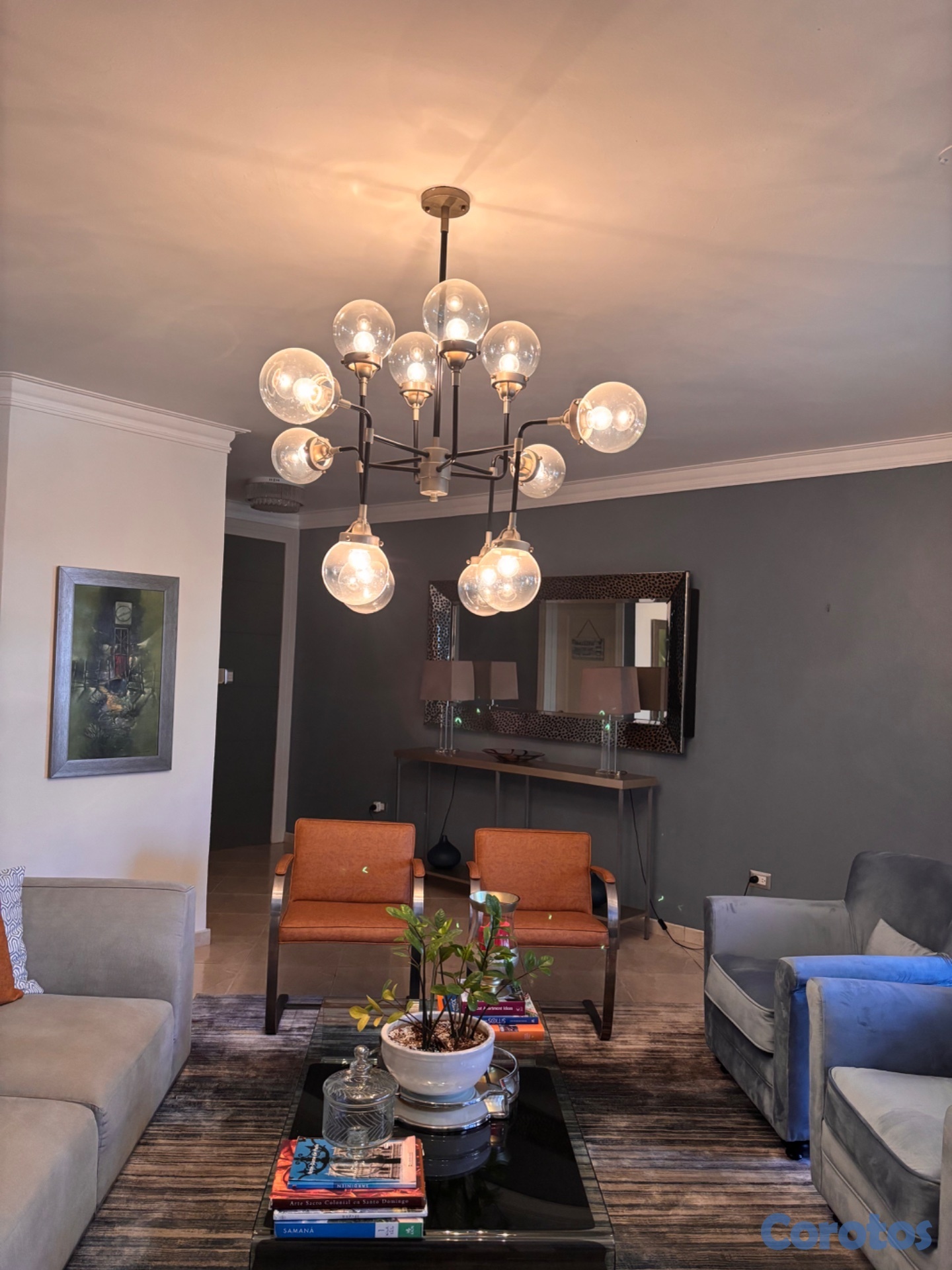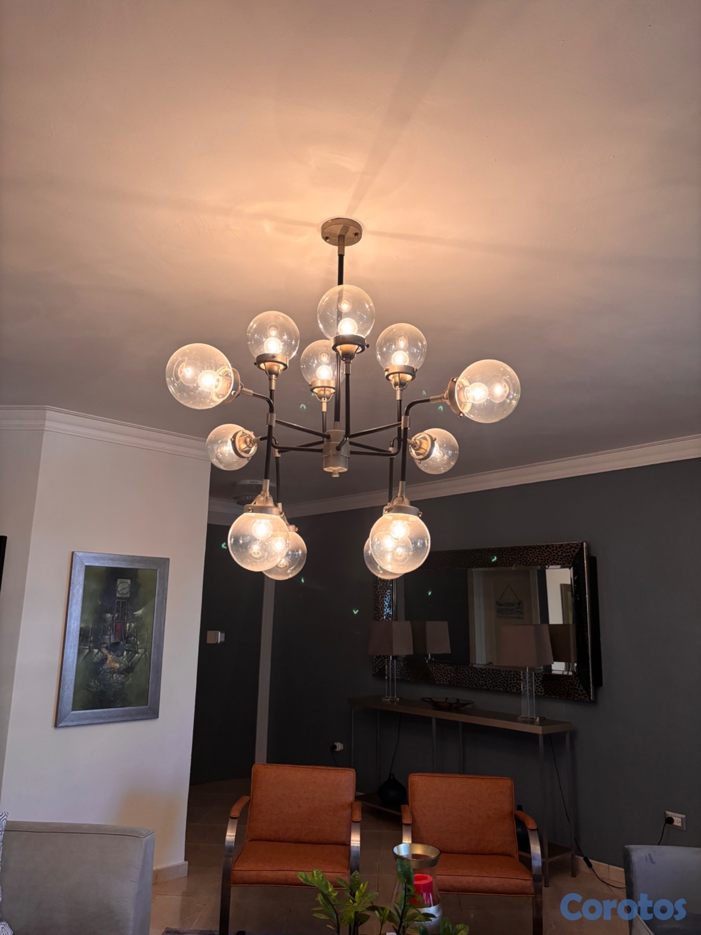 Lámpara de techo con 12 luces (bombillas incluidas), puede ser usada tanto en sala como en comedor.