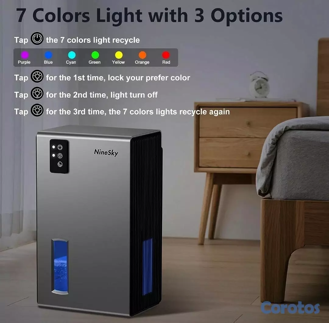 7 LUCES NOCTURNAS DE COLORES: Mejore el ambiente de su dormitorio con 7 vibrantes colores LED. Elija un color estático o disfrute del ciclo de cambio de color. También funciona como una suave luz nocturna para un ambiente de sueño tranquilo