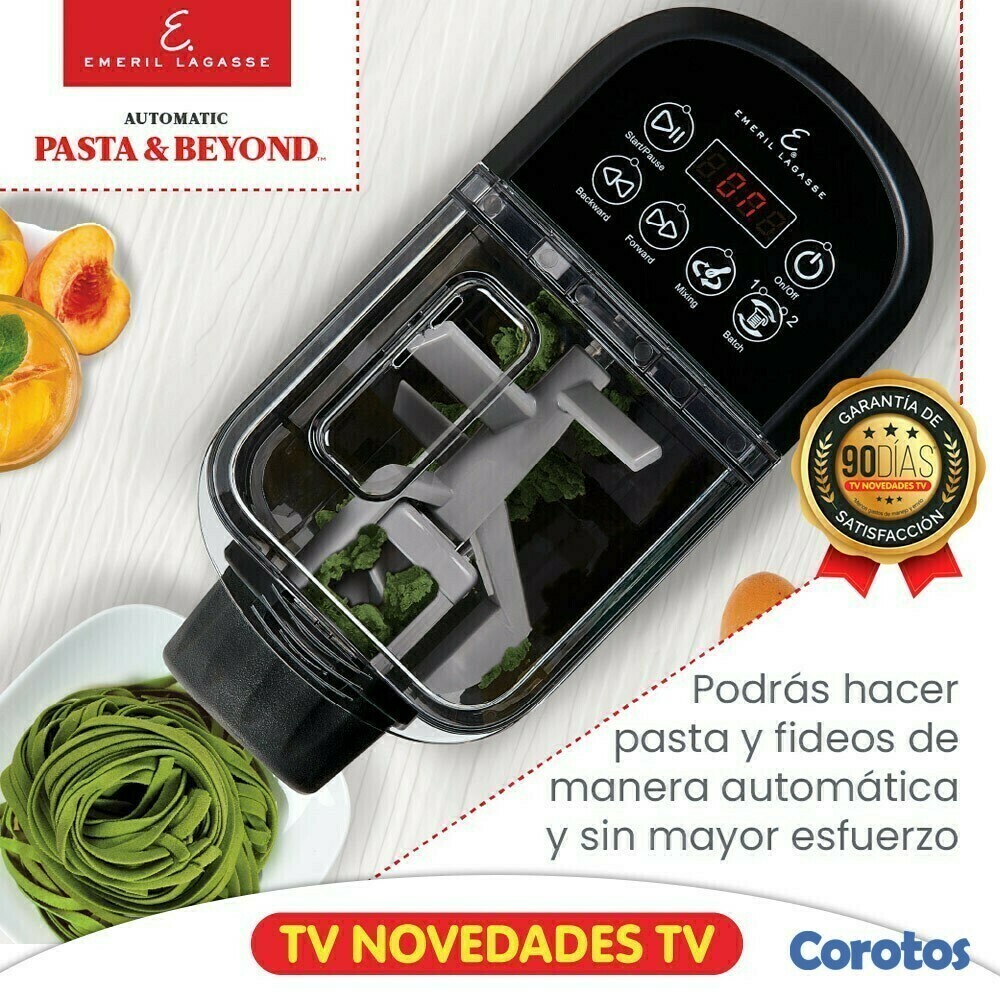 Emeril Pasta & Beyond Deluxe es una máquina de uso doméstico que cocina, mezcla y amasa diferentes recetas, para hacer distintos tipos de pastas de una manera rápida, practica y sencilla, permitiéndote personalizar tus pastas con total creatividad. Adicional te ofrece accesorios para usarlo como exprimidor de jugos y para elaborar postres como helados y granizados a base de fruta congelada.