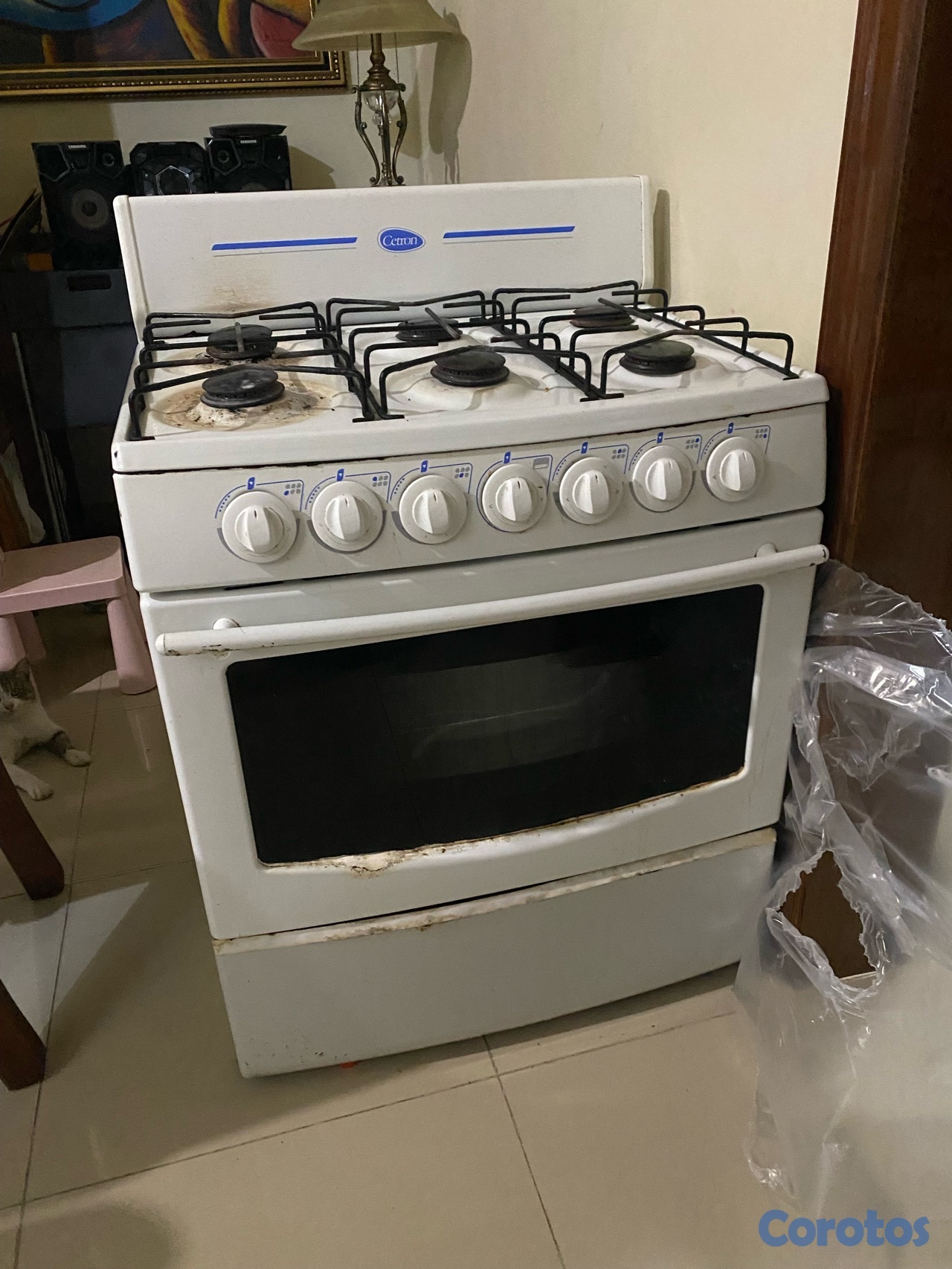 Vendo estufa Cetron de 6 hornillas. Requiere mantenimiento (cambio de tapa, quemadores y pintura). El horno funciona correctamente.