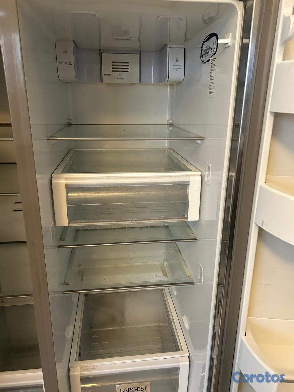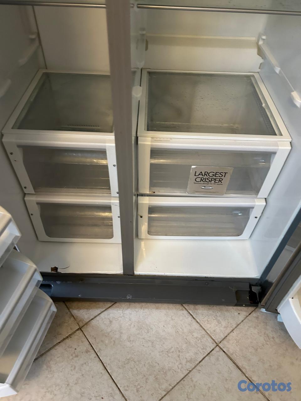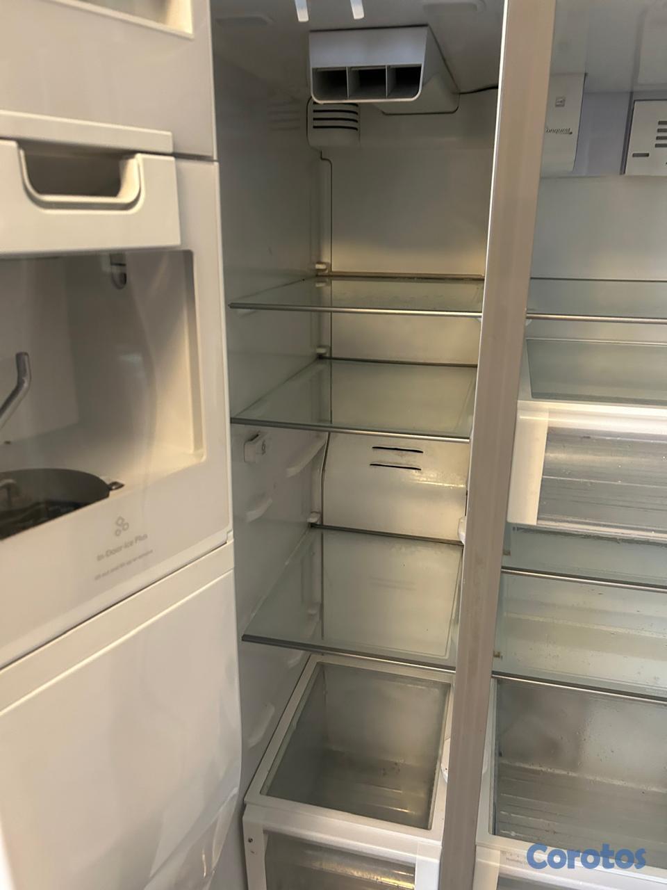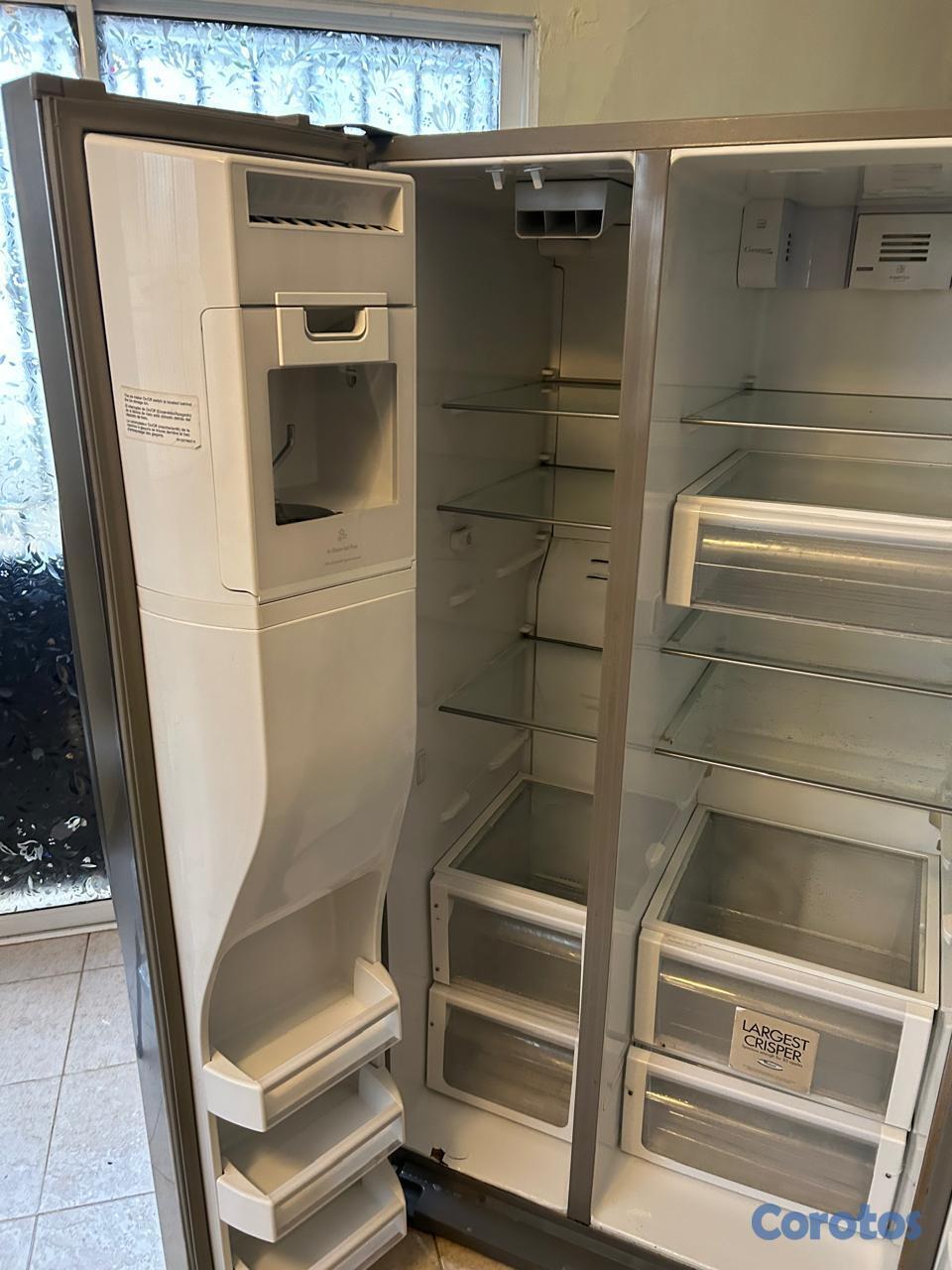 Nevera de dos puertas con el freezer en el lado izquierdo.
