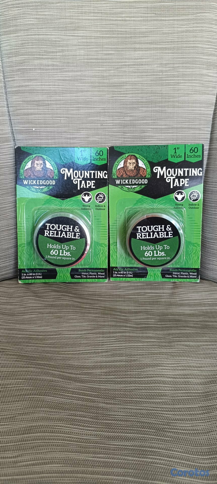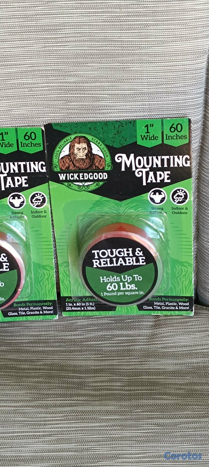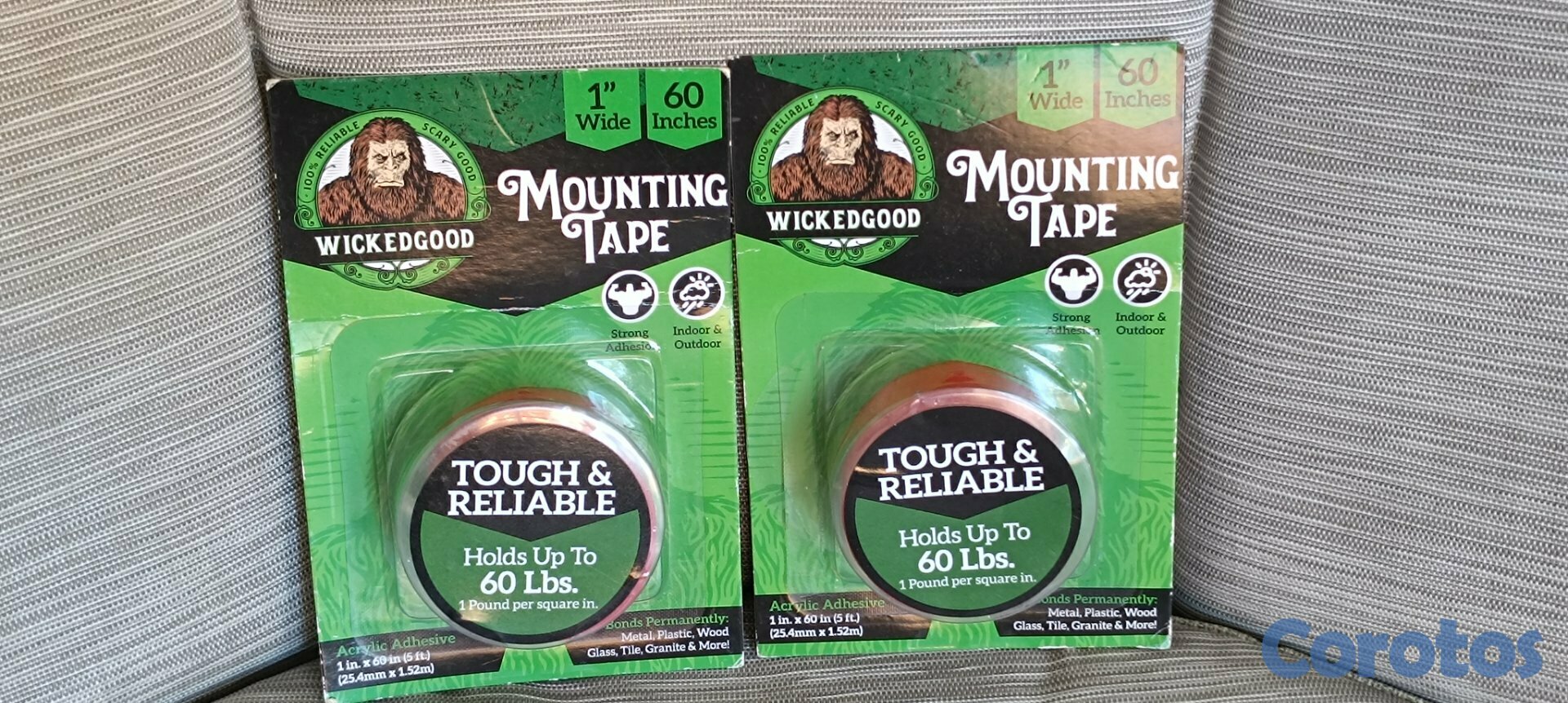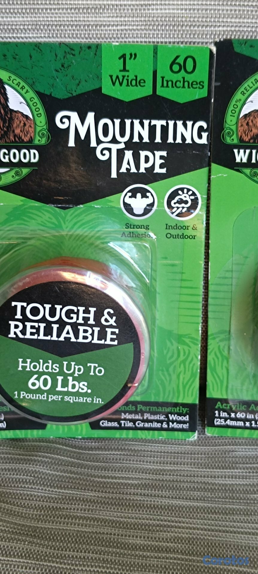 WickedGood Cinta de montaje (1 x 60"), cinta adhesiva de doble cara, cinta resistente para interiores y exteriores, impermeable (transparente) (WGA-PET-1X60)