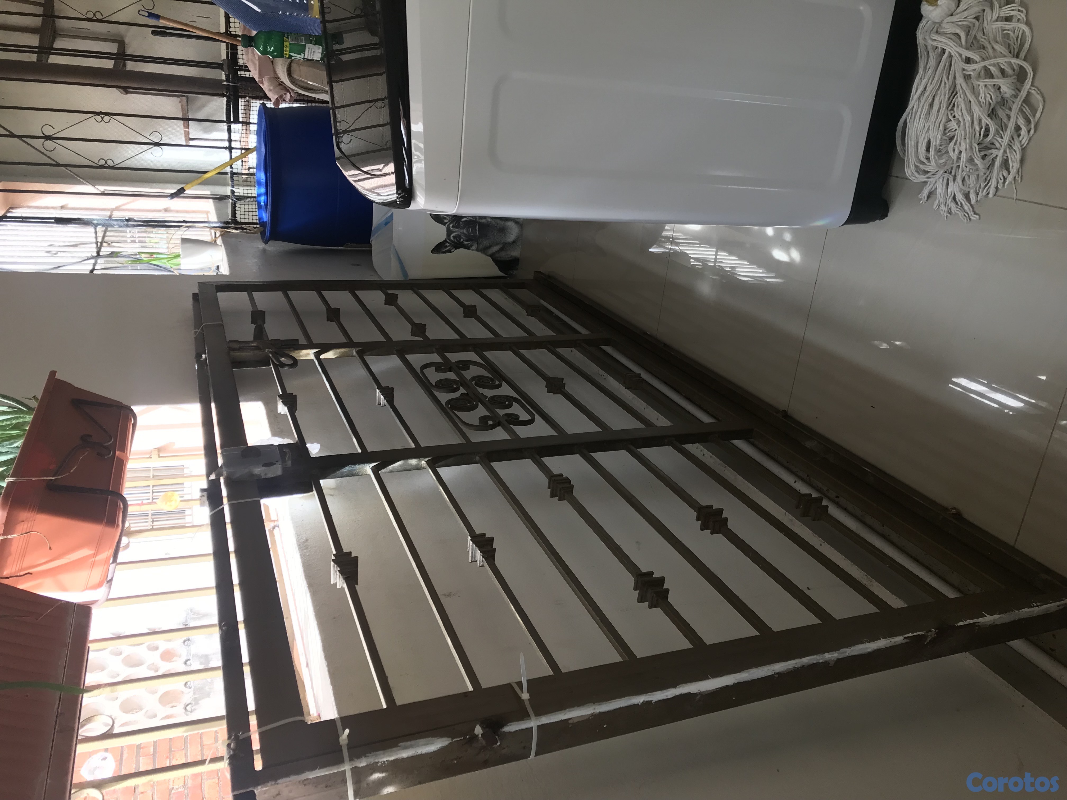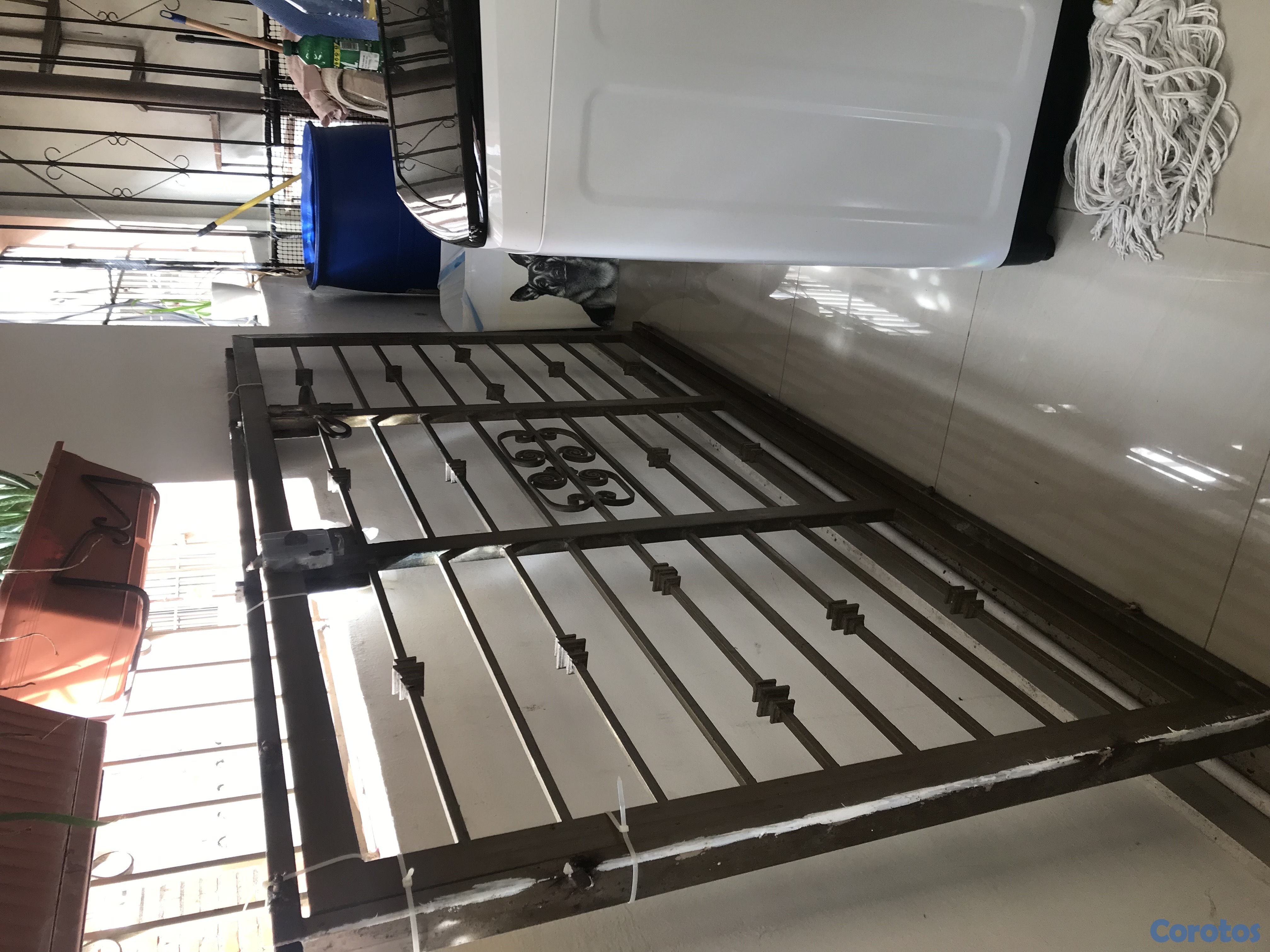 puerta de hiero con su marco es grande