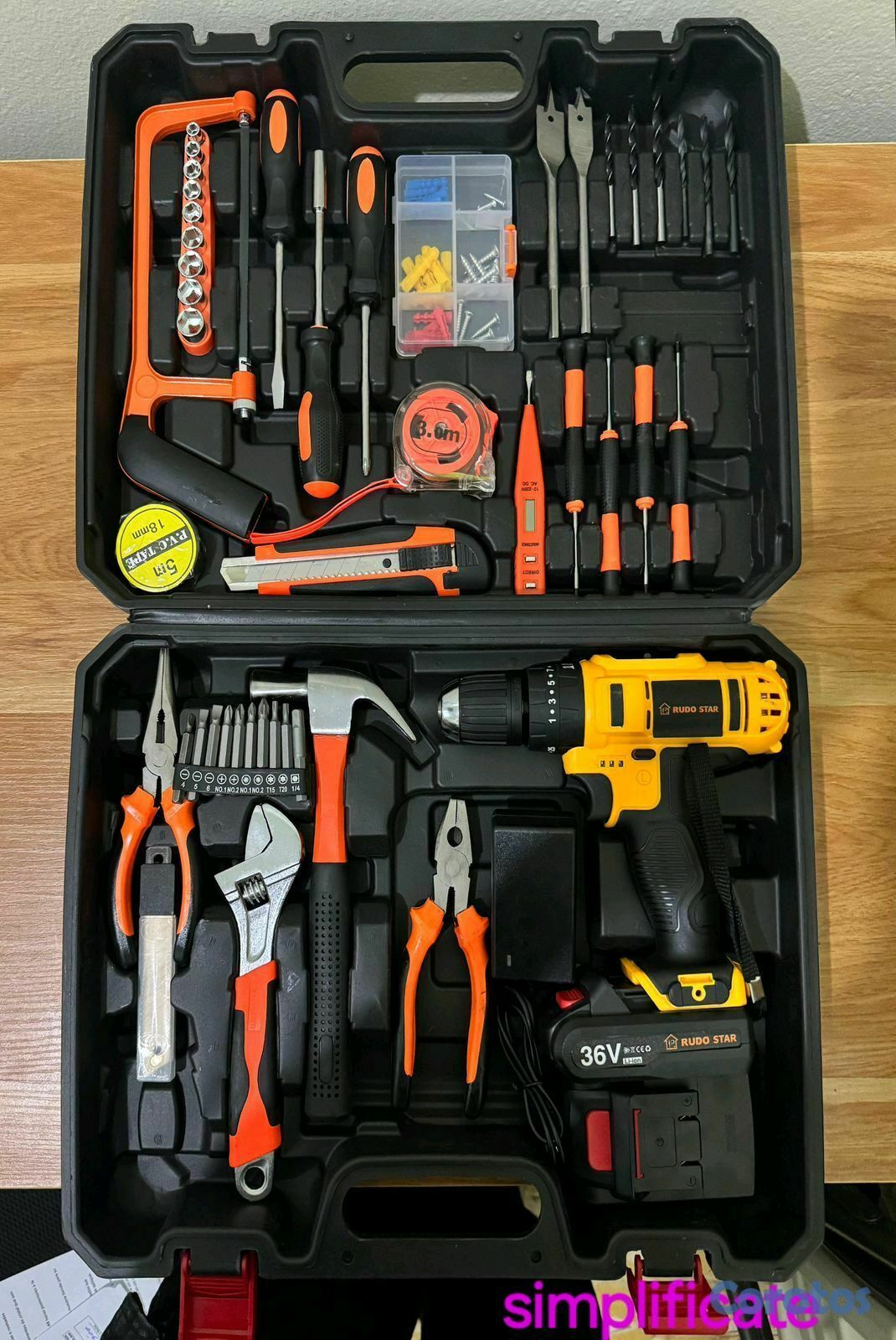 Taladro Amarillo con herramientas 36v, 2.0Ah de la marca Rudo