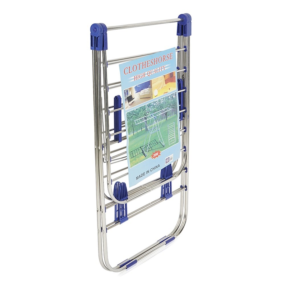 Un práctico tendedero para uso en interiores y exteriores.